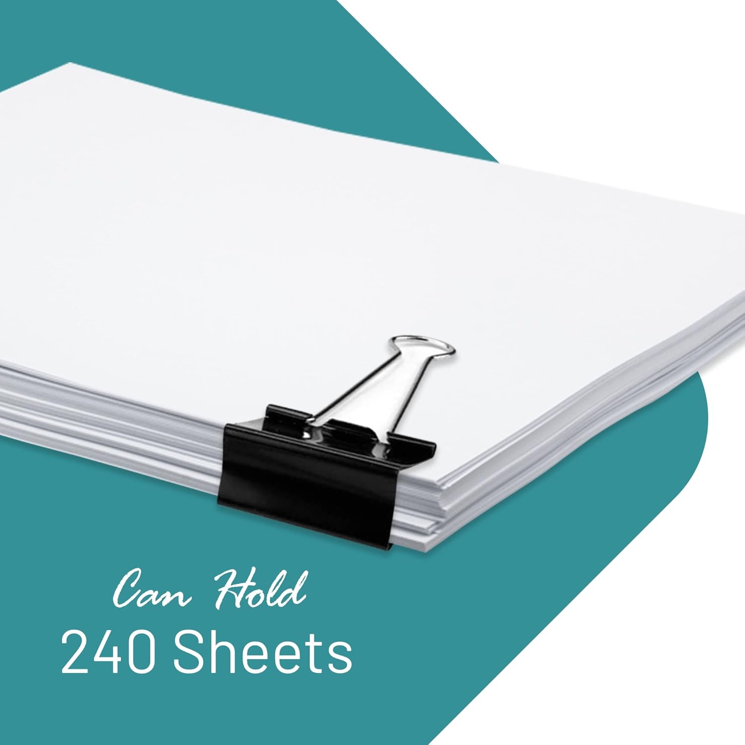- Includes 48 large binder clips. 2” – holds 240 sheets of paper.