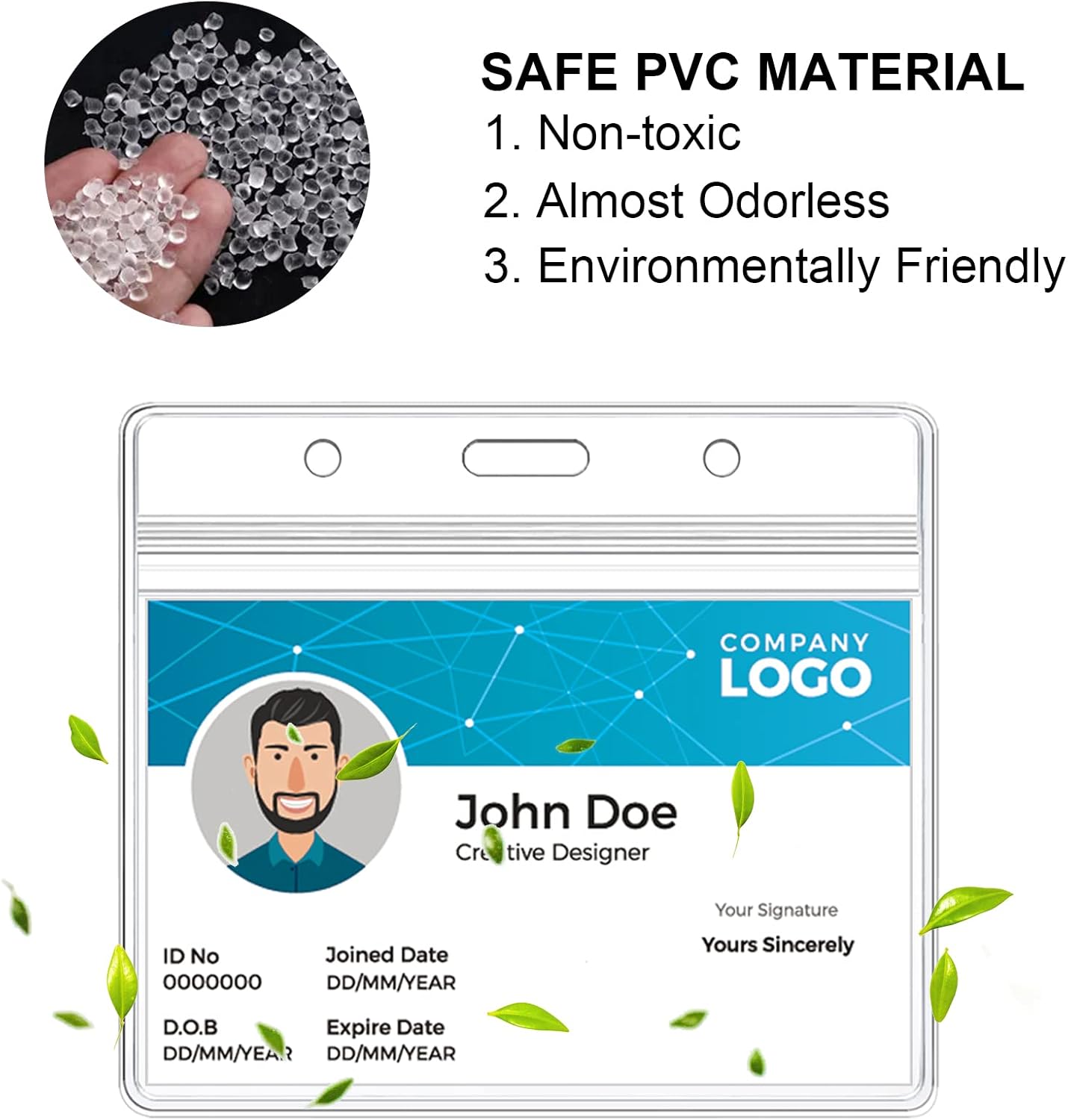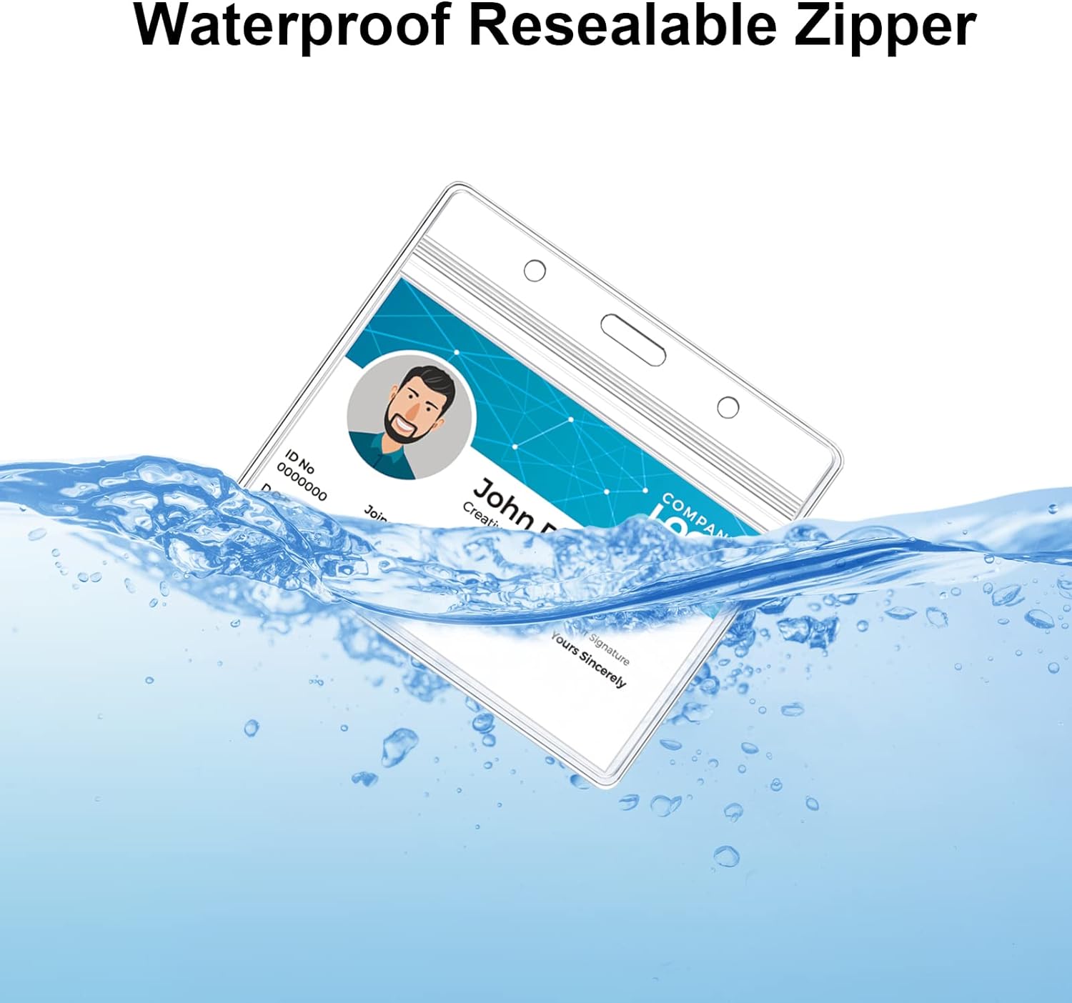 - Waterproof: Name tag holders and metal badge clips with convenient resealable zipper seal protect card security and guarantees that the contents are protected from dust and water, keeping them dry and clean