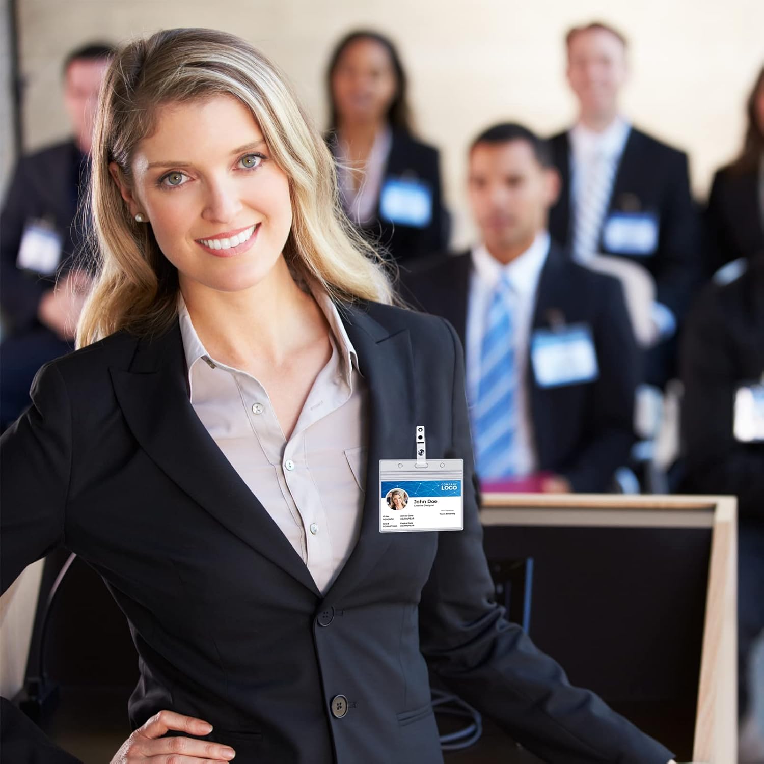 - Package Content: Includes 50 horizontal ID badge holders and 50 metal badge clips. Name tag holder size is 3.9 x 3.3 inches, suitable for bank cards, employee's card and ID cards