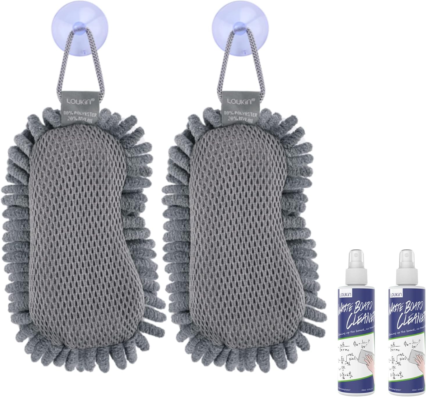 loukin Shag Dry Erase Eraser (3.4 fl oz Whiteboard Cleaner Included), Microfiber White Board Eraser, Washable Glass Board Erasers, for Classroom, Home and Office Use(2 Pack)