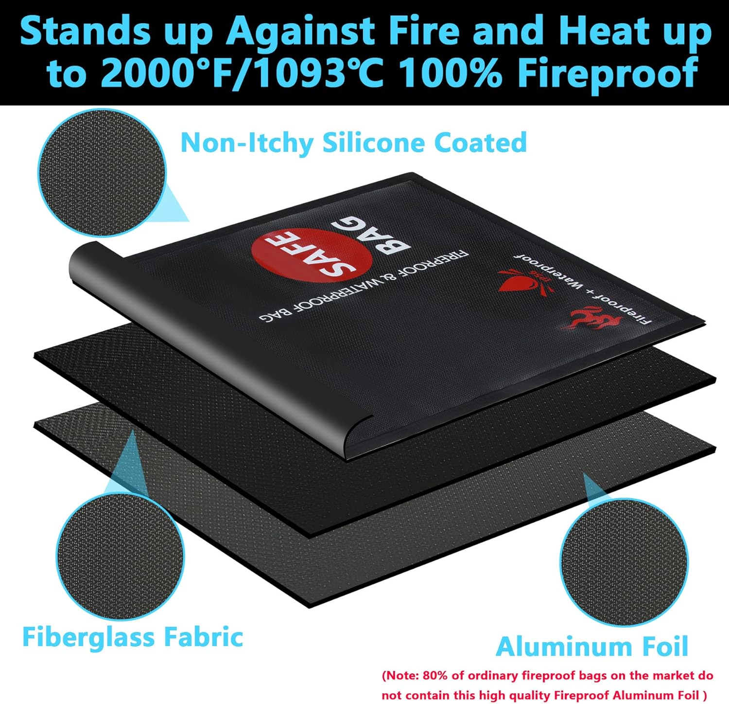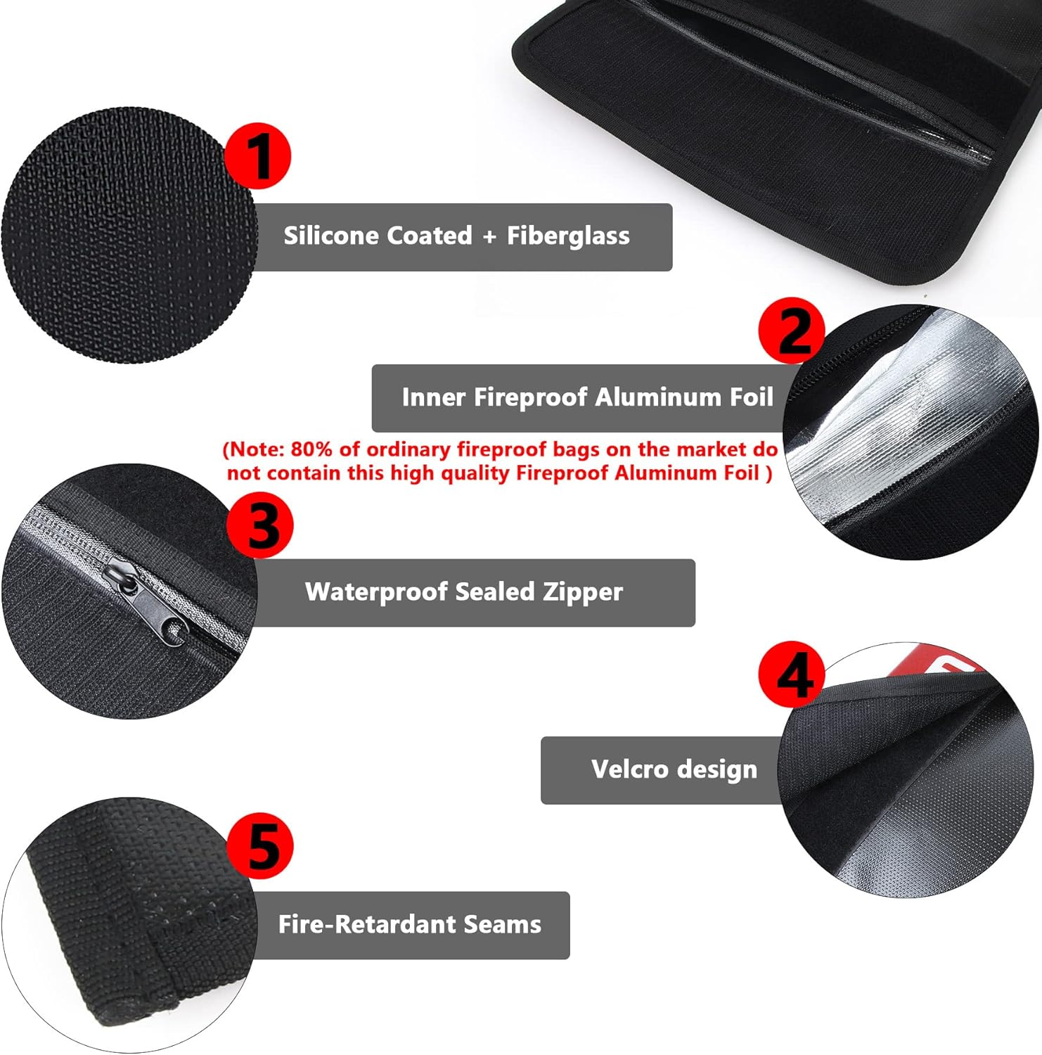 - Fireproof Design: Made of super high quality Silicone Coated Retardant-fiberglass exterior and aluminum foil interior, which can withstand temperatures as heat up to 2000 ℉.