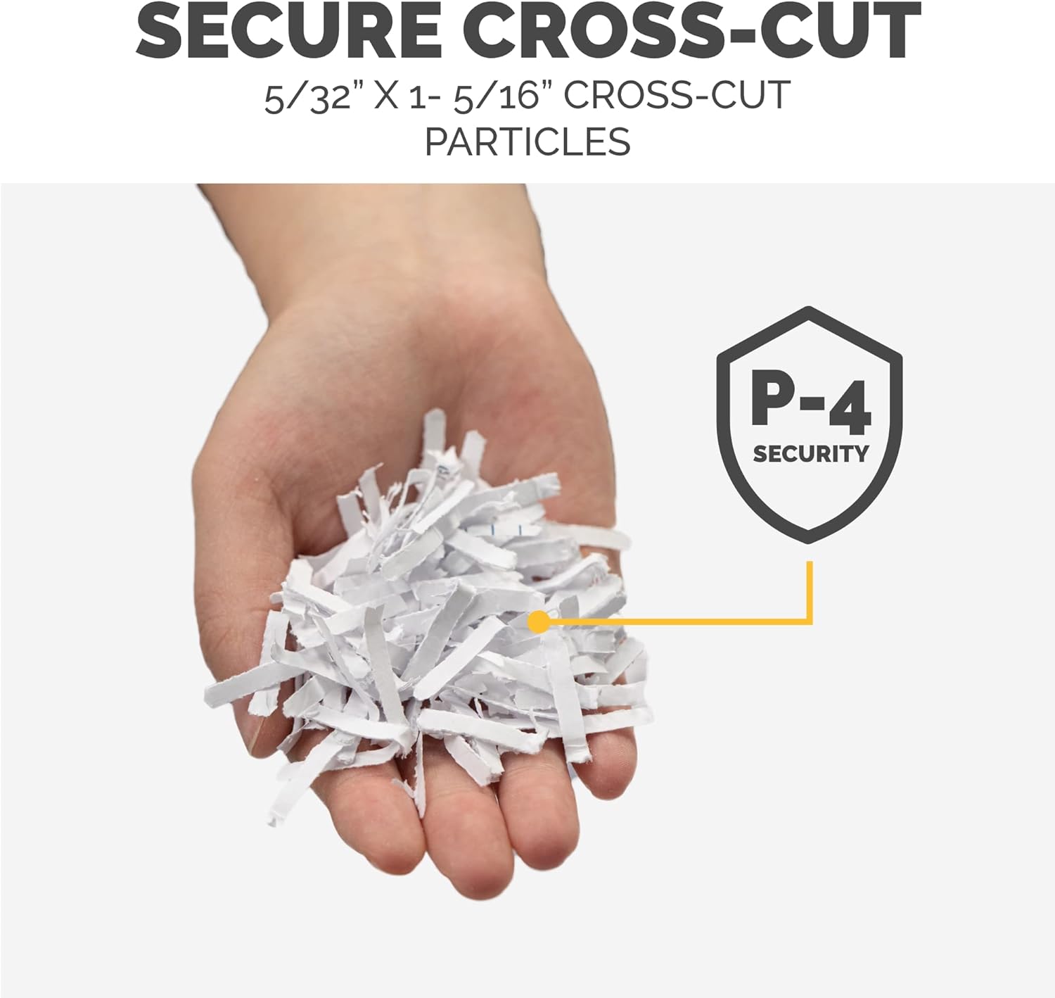 - Enhanced Security to Keep Information Safe: Shreds 8 sheets of paper per pass into 5/32” x 1-5/16” cross-cut particles (Security Level P-4), providing greater security for confidential documents