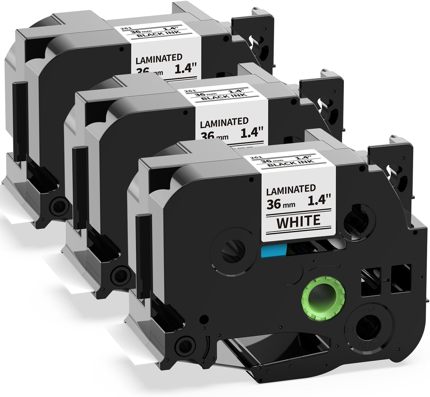 - 3-Pack compatible with brother p-touch label tape 36mm TZe-261 TZe261 TZ-261 TZ261 36mm tze tape. Color: Black on White. Width: 36mm (1 1/2") Length: 8m (26.2ft)