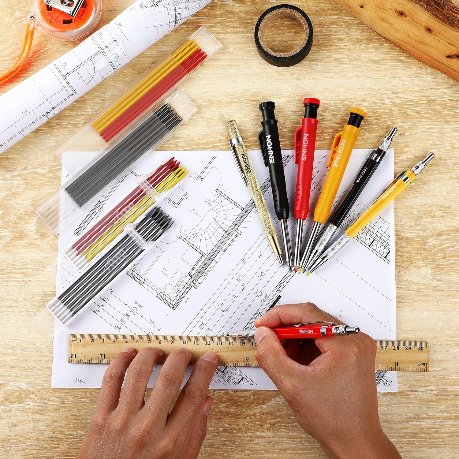 - 【3 Color Solid Refills】This architectural pencil set includes 36 durable color refills (red, yellow, black), engineered for strength and smoothness. The ultra robust leads deliver crisp, vibrant lines on any surface, ensuring precision and reliability for professional drafting and sketching