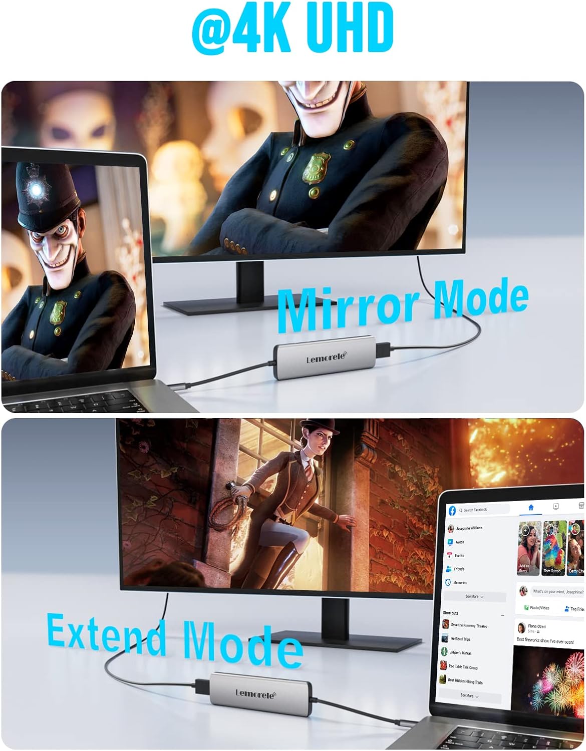 - 【High Power Delivery】 Lemorele 8-in-1 type c hub supports up to 100W Charging Power, power out is limited to 87W for safety. This type c hub can provide stable power for other accessories such as hard drives while safely charging your device.