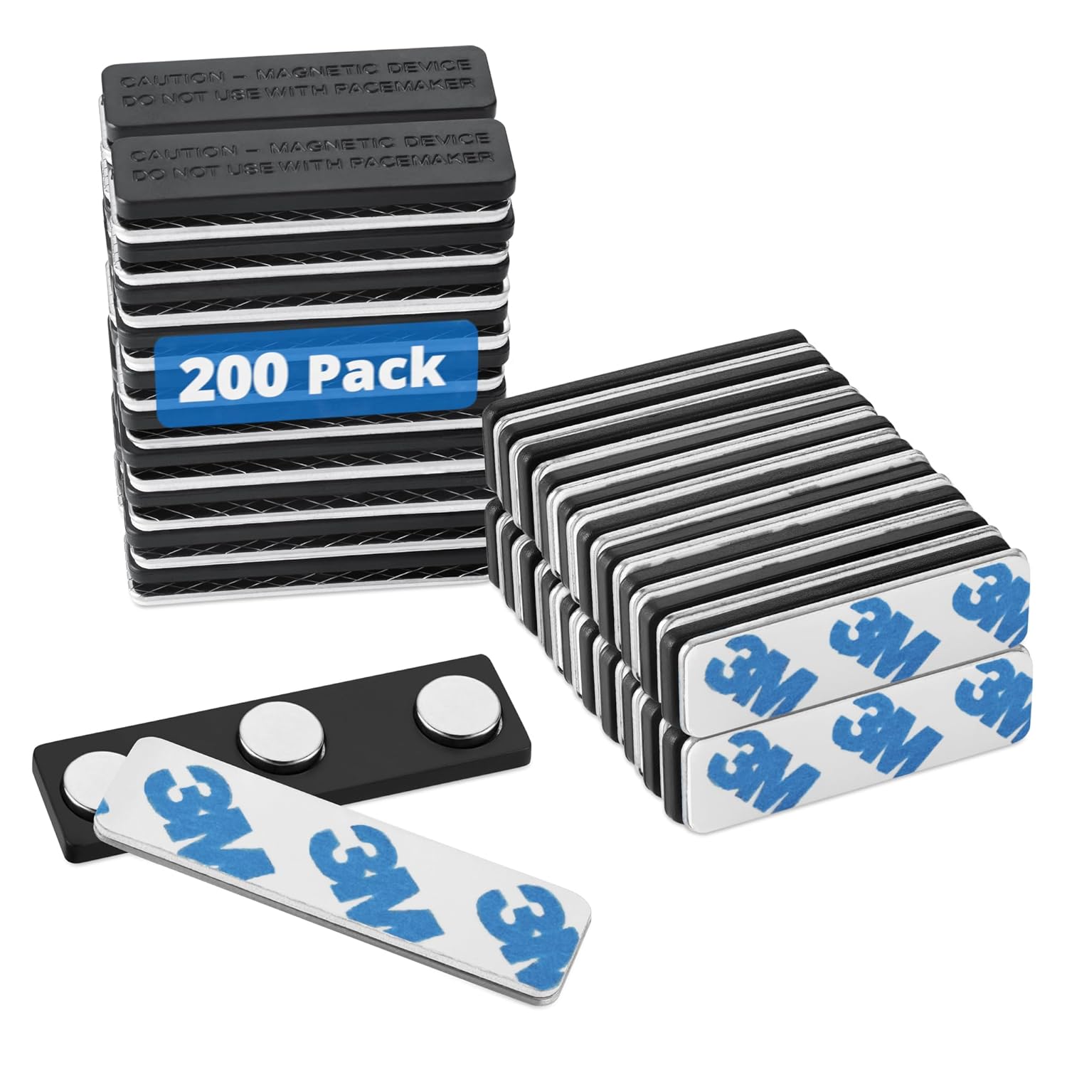 - INCLUDES - 200 Magnetic badge magnets: the 2-piece design consists of a rustproof iron front plate and a black, plastic back plate