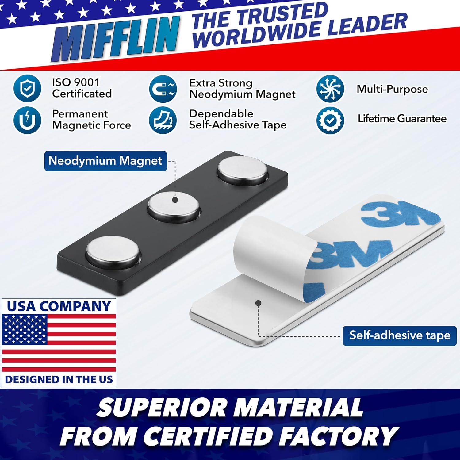 Mifflin-USA - Name Tag Magnets - 200 Pack, 1.75 x 0.5 Inches - Premium ID Badge Holder with 3 Extra Strong Neodymium Magnets