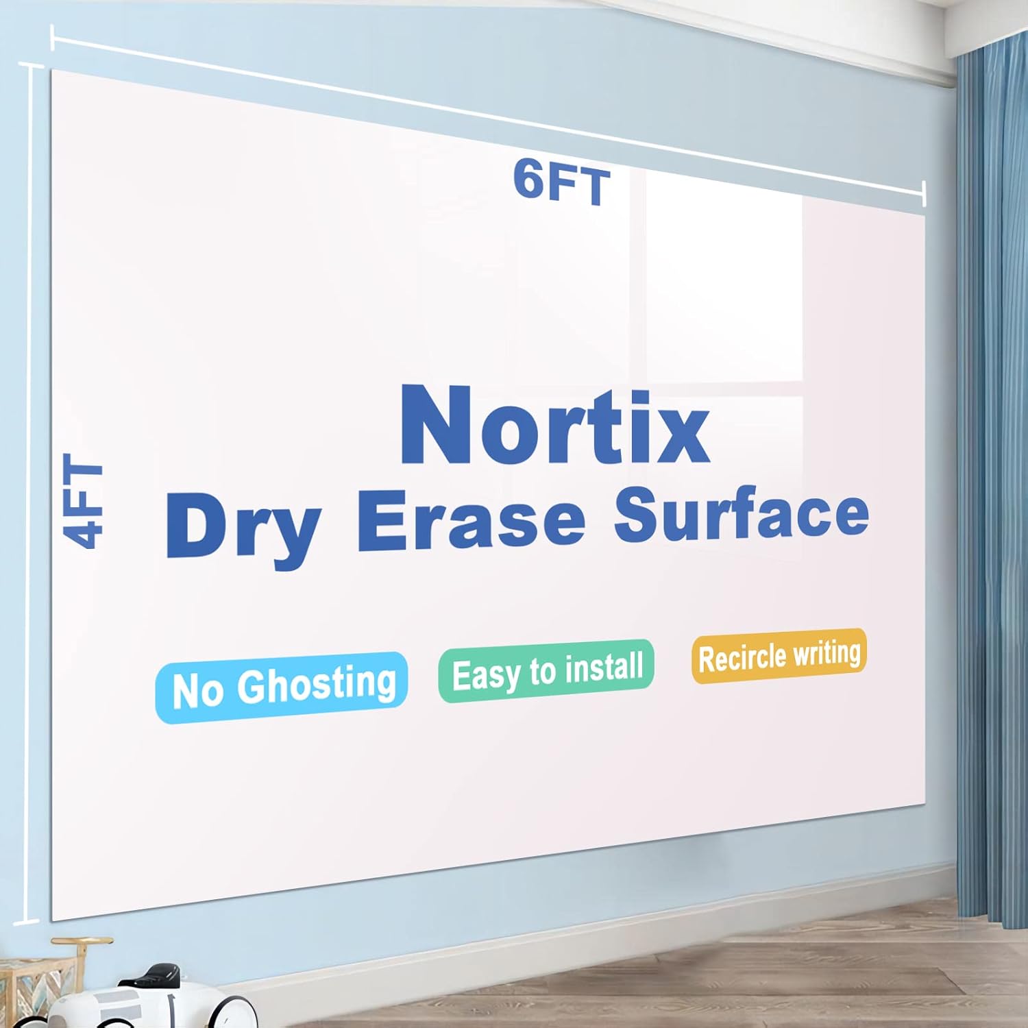 - A Life Saver for Office/Home/Classroom: Are you still bothering the expensive and space-consuming traditional whiteboards? Are you still troubled by the messy and stains on the wall by kids doodle? Are you still troubled by the annoying chalk dust? Nortix peel and stick white board paper can solve all your troubles.