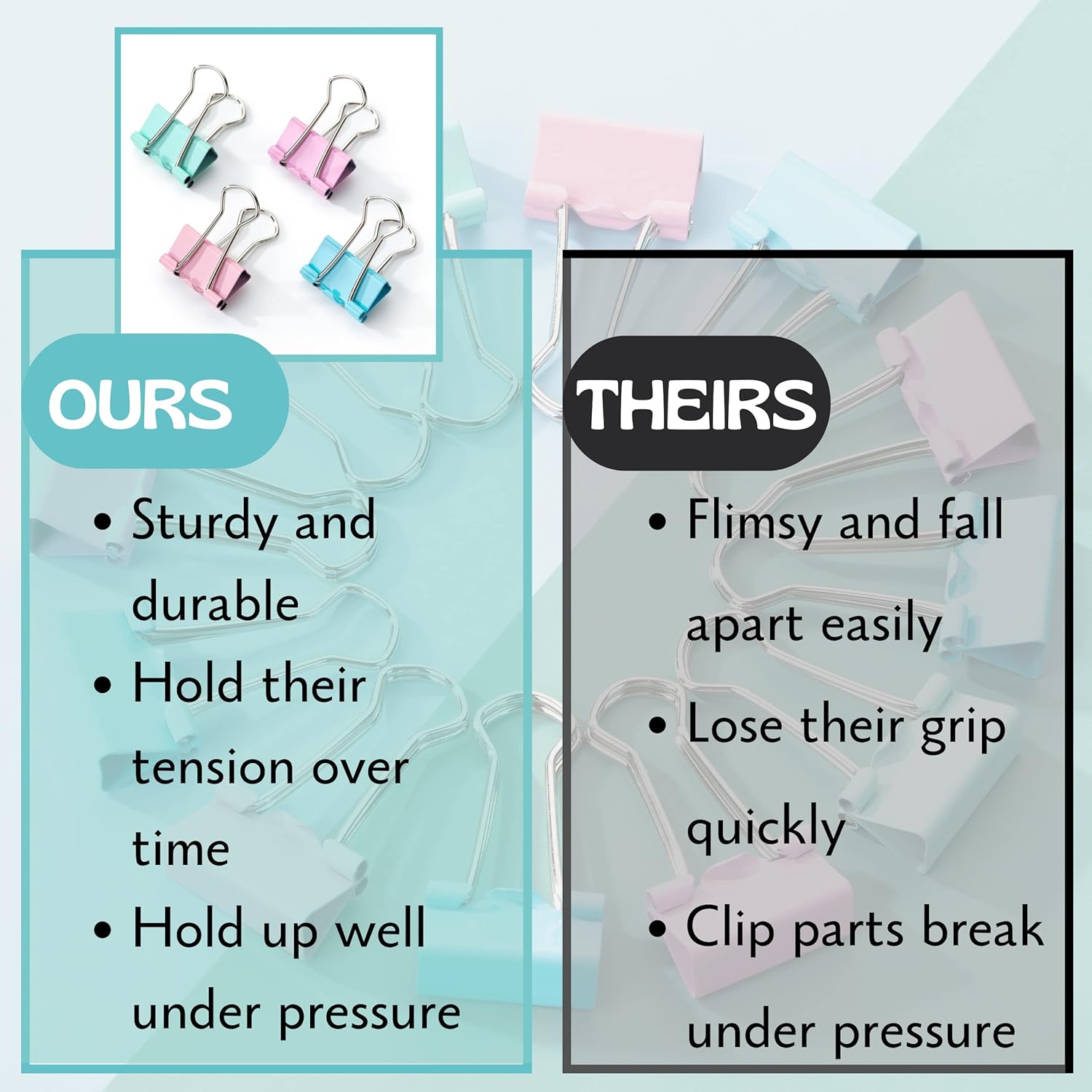 - These binder clips are made of tempered steel for extra strength and durability. The rust-resistant coating keeps them looking new, even after long-term use.