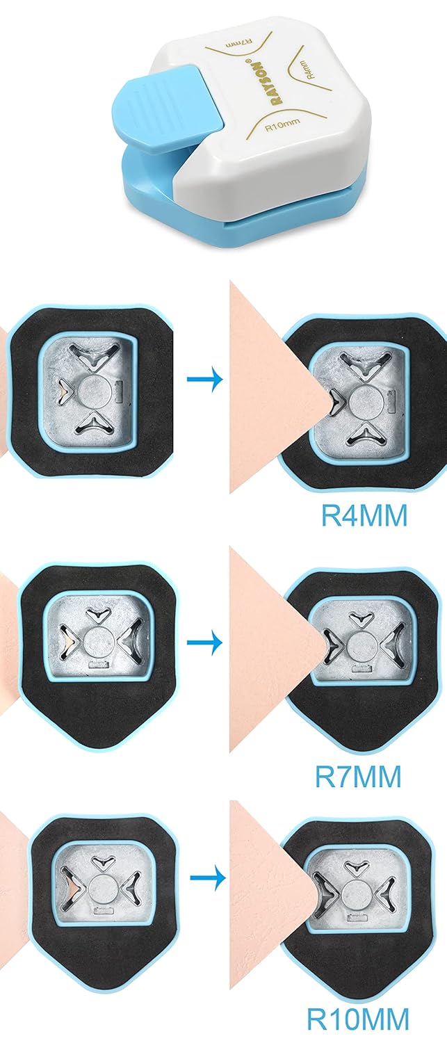 - 3 Corner Sizes in One Tool: Easily round corners with 4mm, 7mm, and 10mm radius options, perfect for customizing your documents, photos, and more.