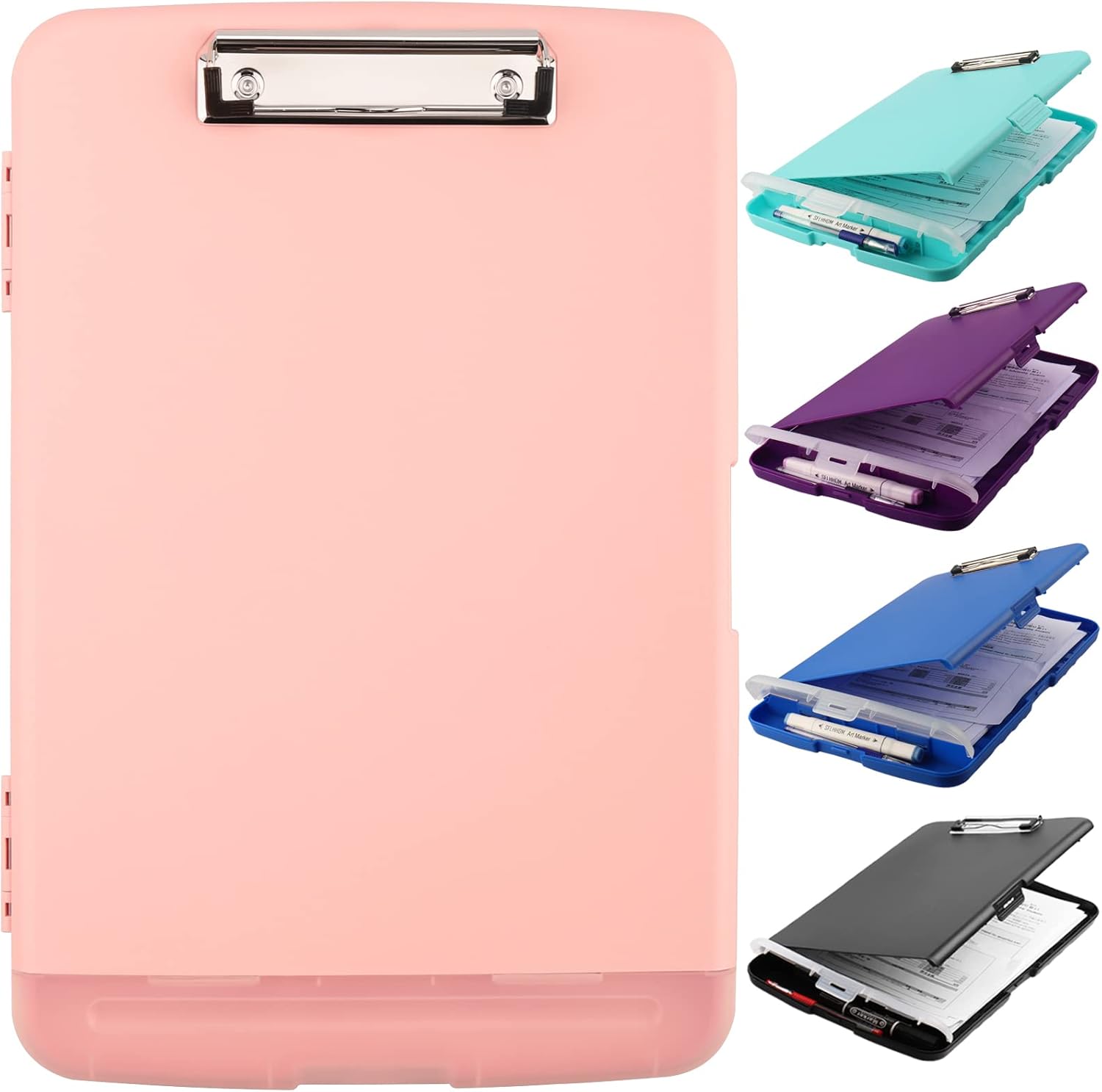 Clipboard with Storage,A4 Binder Nursing Clipboards with Pen Holder,Heavy Duty Storage Clipboard with Low Profile Clip, Clipboards Folder Side-Opening Clip Boards,Smooth Write Clip Board (Light Pink)