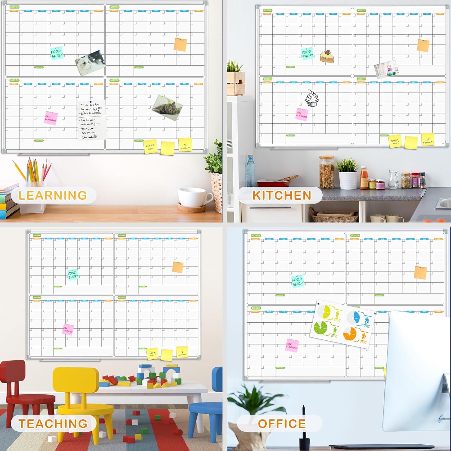 - SMOOTH & ROBUST DRY ERASE PERFORMANCE: Smooth Scratch-Resistant surfaces, enjoy writing message notes on 48" x 36" calendar board, easily dry wipe with all dry-erase markers.