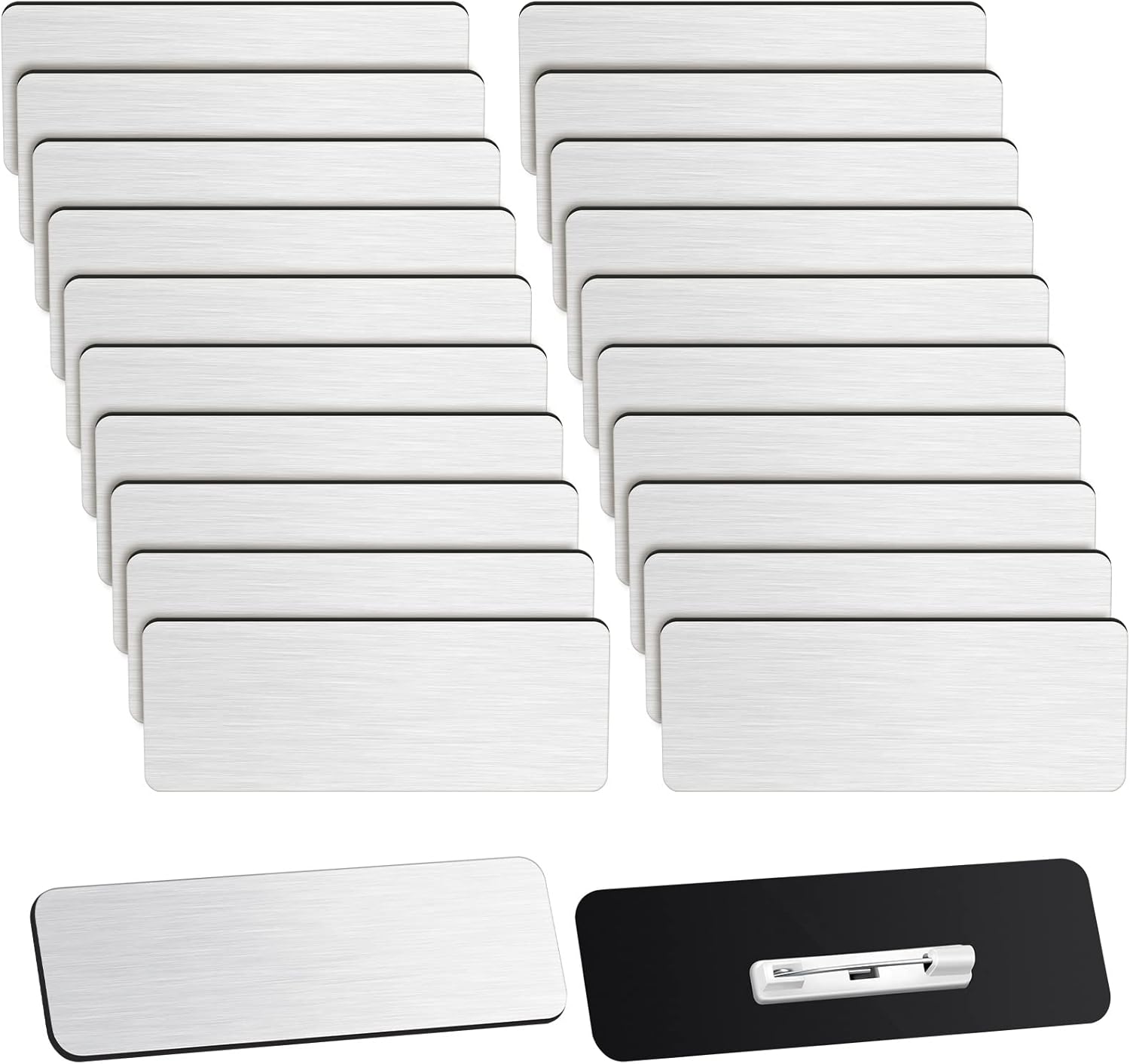 Breling 100 Pieces Name Tags with Pins 1 x 3 Inches Blank Name Tags Reusable ID Badge Holders with Clip for Office Workers Students Employee Custom(Silver and Black)