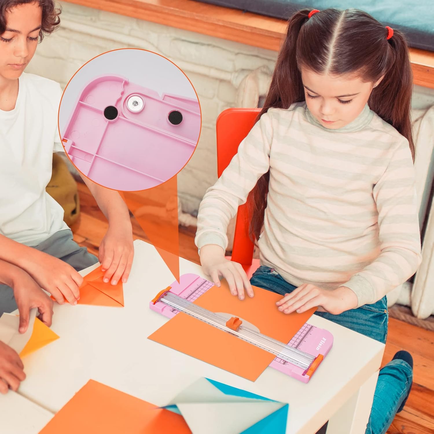- ★【Kids Handcraft Helpers】: Due to its net weight only 12oz and blade with safety protection design and other advantage, parents can rest assured let the children operate the paper cutter alone to complete some handcraft projects.