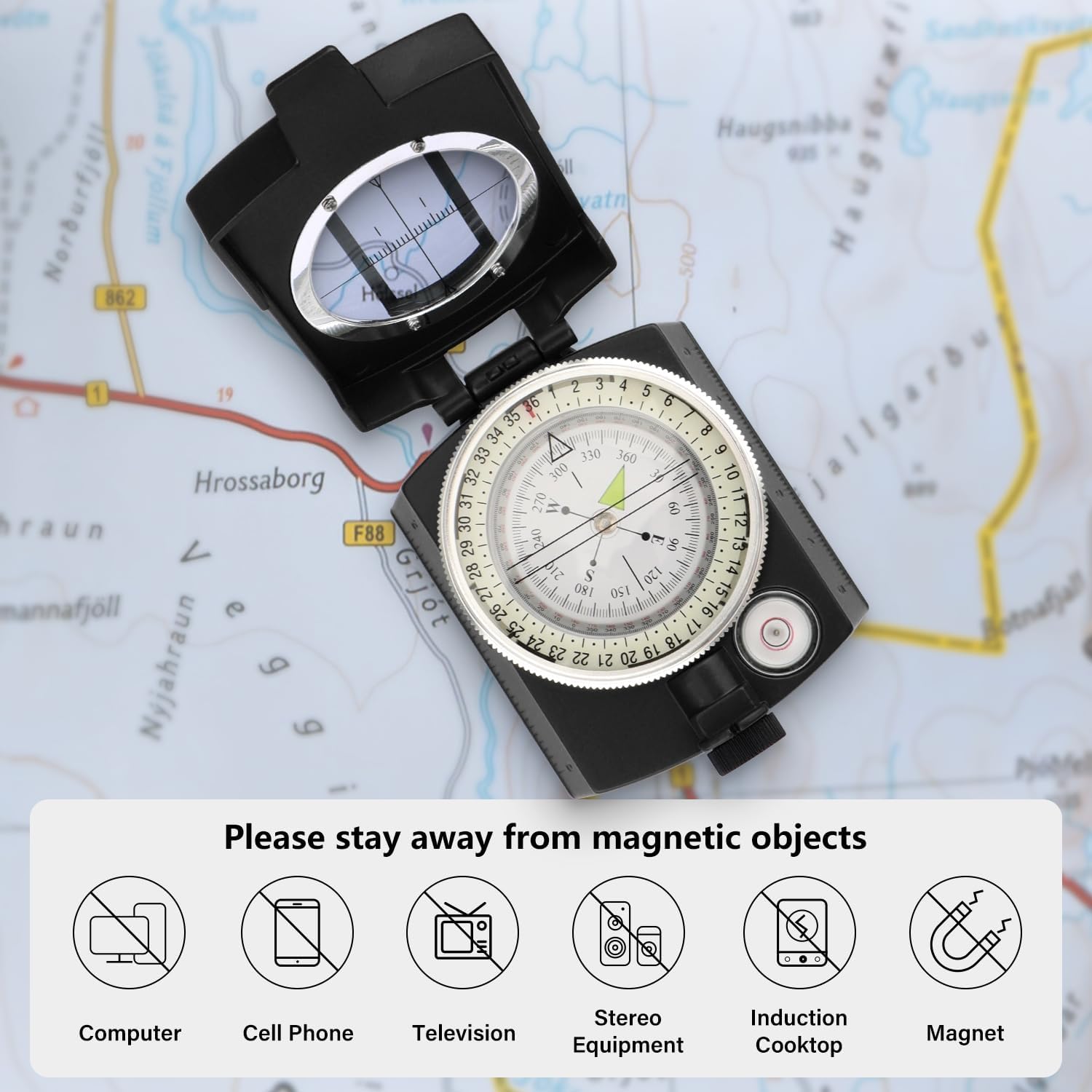 - The Awesome Gift-Professional military compass is stable and fearless in harsh environments, suitable for driving, boating, camping, hiking, exploring, hunting and so on outdoor activities, a great gift for kids, scouts, backpackers and women!