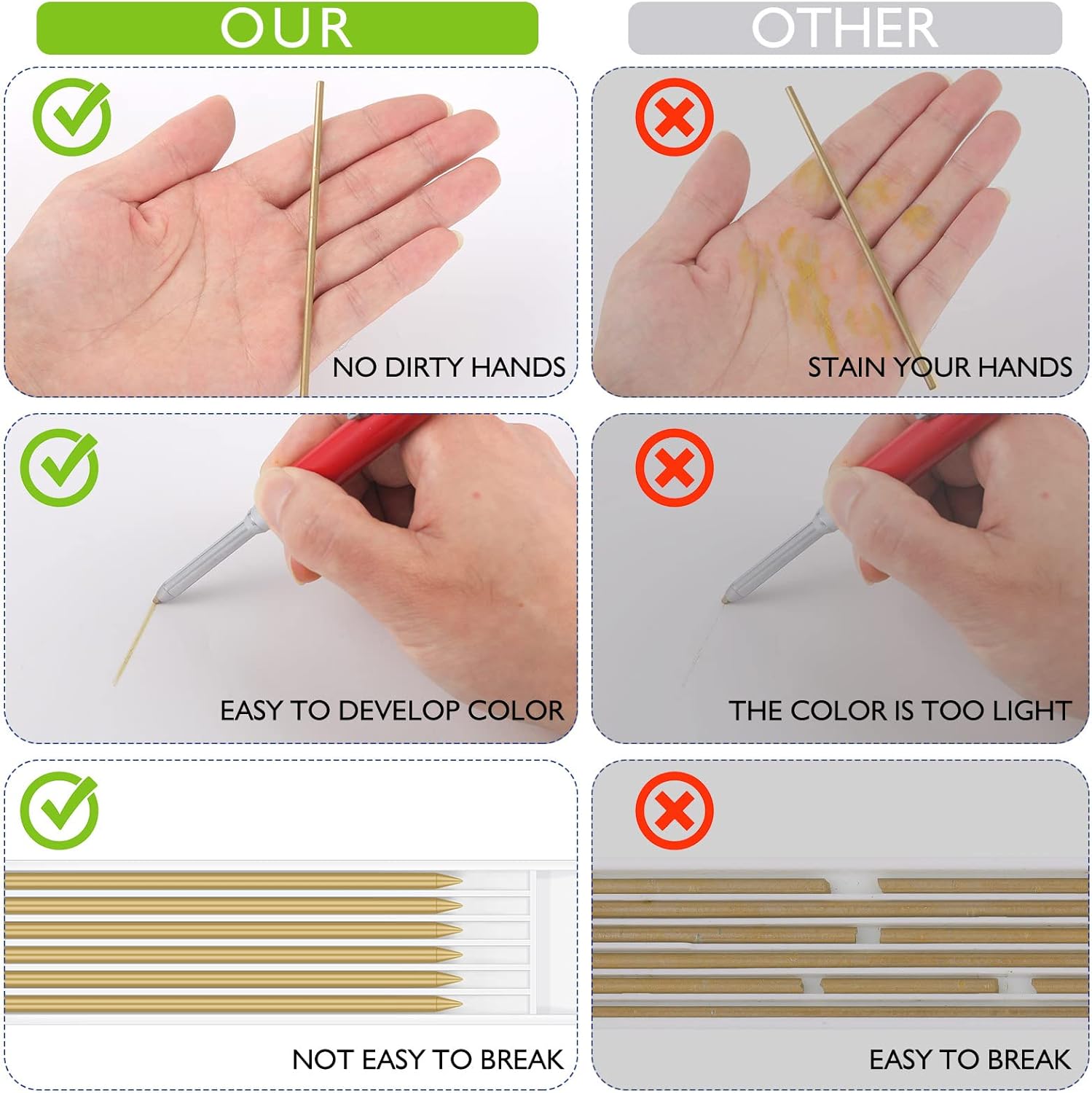 Spakon 60 Pcs 2.8mm Lead Refill Carpenter Construction Pencils Marker Lead Refills Dry Mechanical Woodworking Pencil Tools for Writing Drawing Drafting (Silver,Gold)