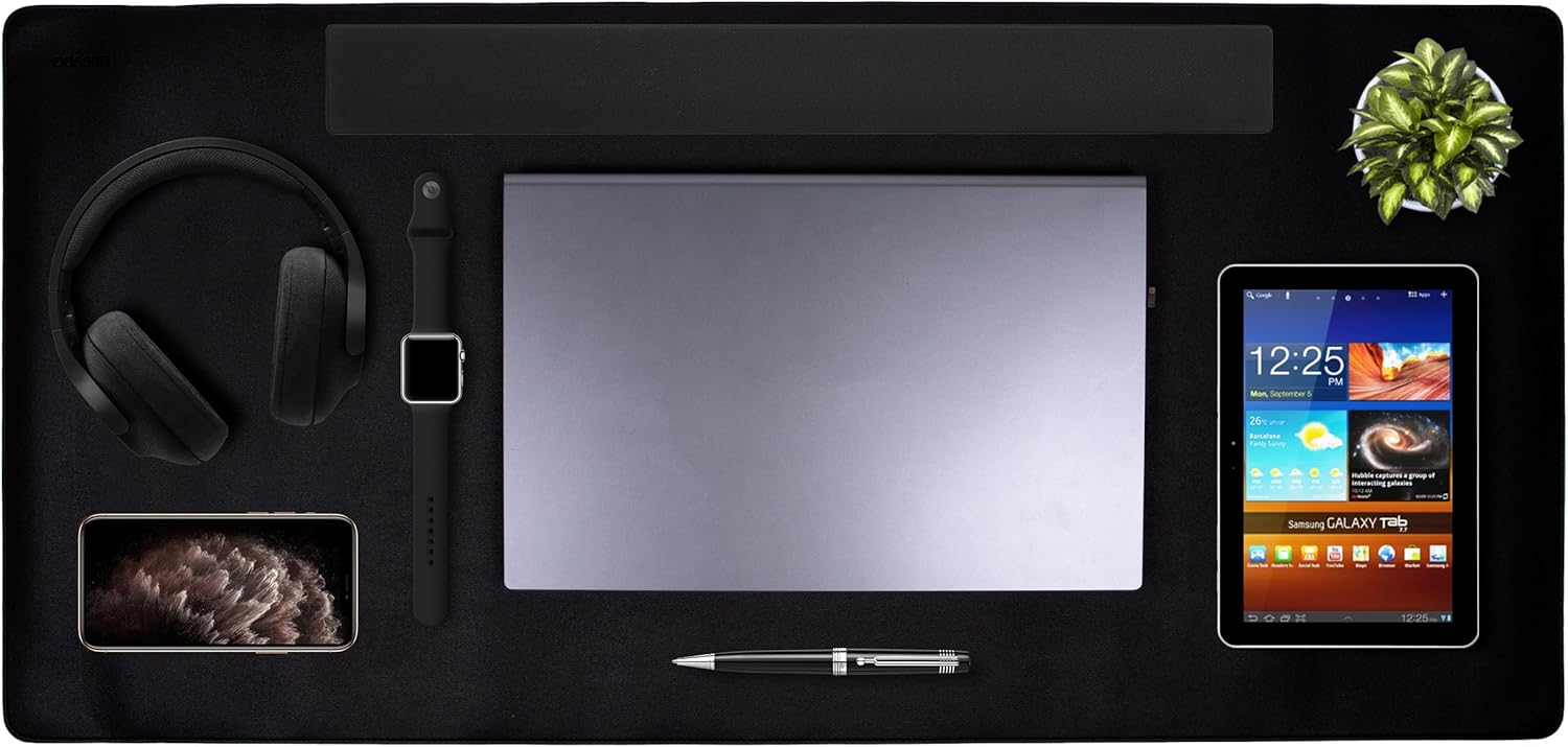 - Trick the eye, successfully: Sleek, sophisticated, illusion creating desk mat for desktop makes everything within its luxurious linear-defining box appear well-organized; to your boss, clients and coworkers. Cossini xl fits-it-all computer pads for a desk easily make your laptop, computer screen risers, keyboard, mouse, legal pad, and pens appear organized.