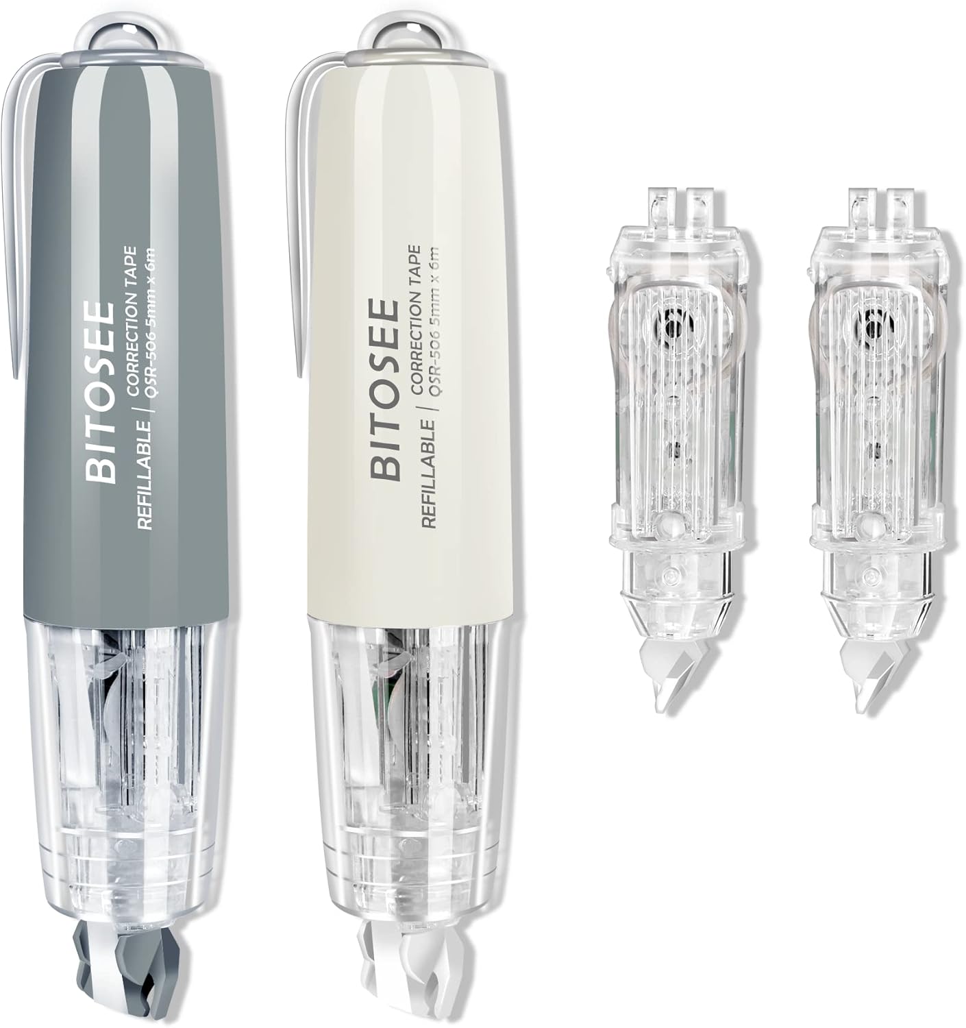- REFILLABLE: Designed in the shape of a pen, get your mistakes corrected with BITOSEE's correction tape precisely with the right and left hand. With our refillable carrier tape, you can easily refill the applicator having to buy another whole one