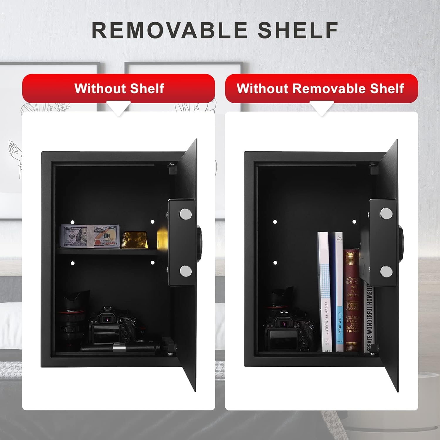- 【REMOVABLE SHELVES】: Safes with removable shelves provide flexible storage solutions, get more space to store your valuables.