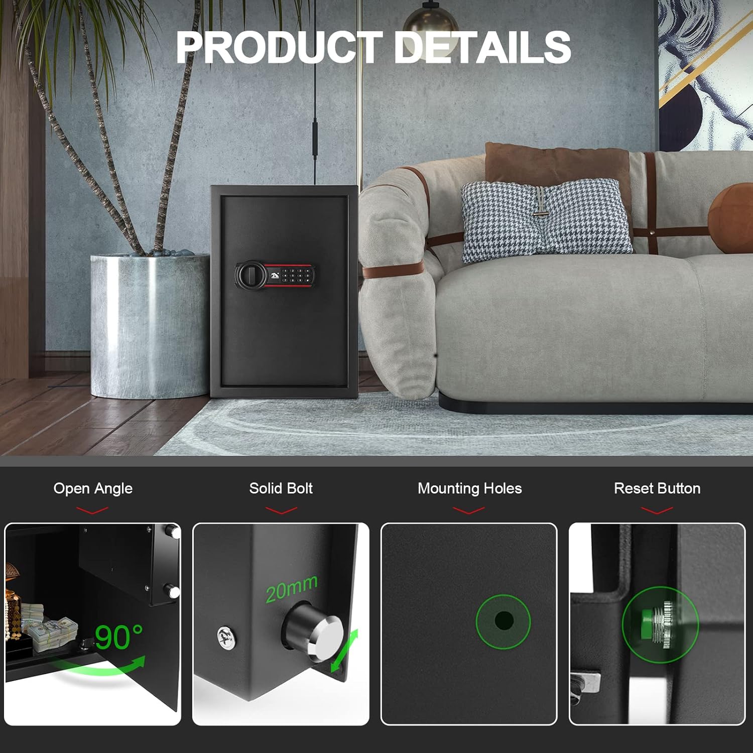 - Material : Bolted home safe, medium safe