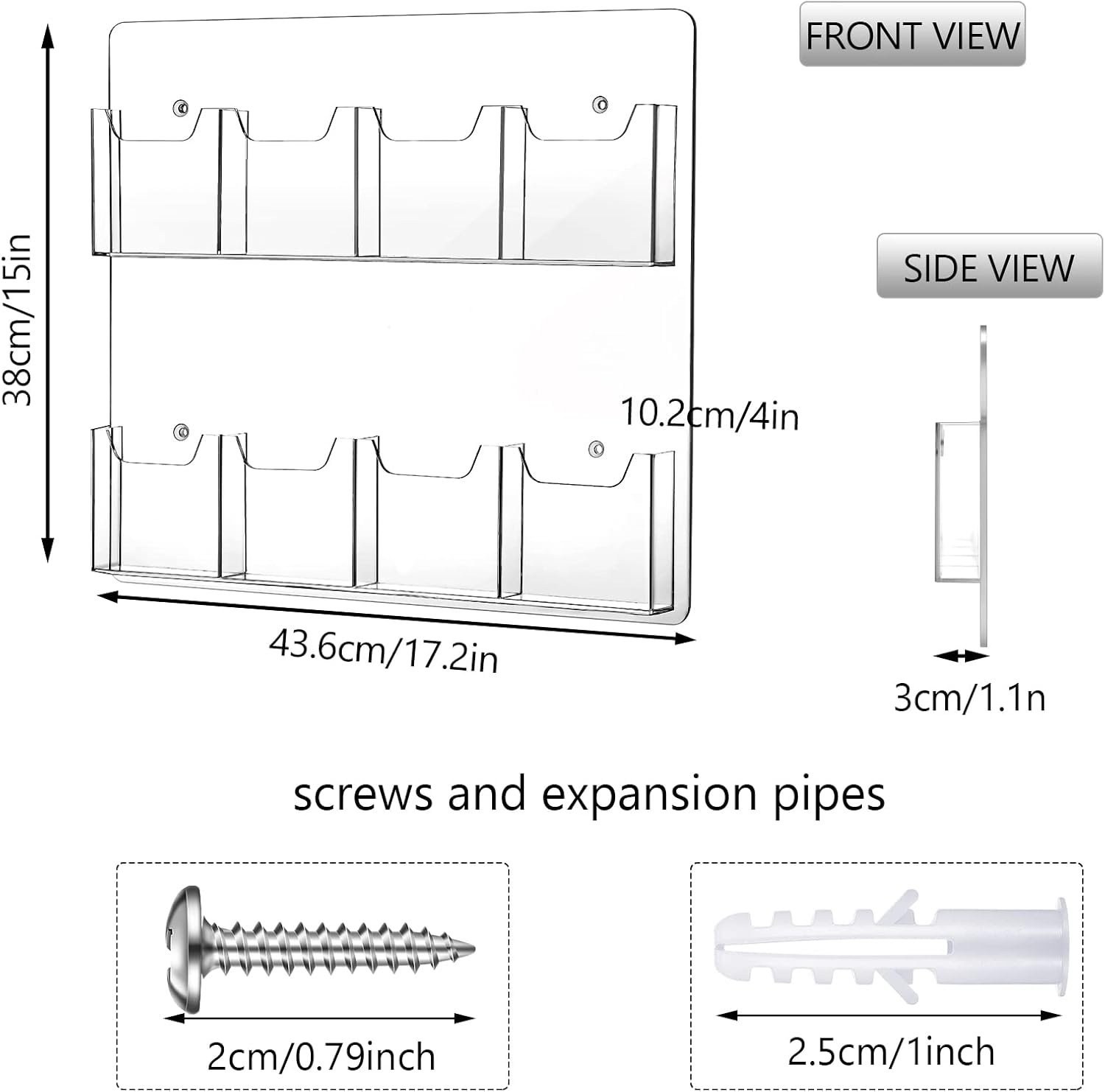 - Suitable Size: the overall dimension of our acrylic brochure wall mount holders is 15 x 9 inches, each pocket dimension is 4 x 1 inch, and each pocket capacity is approx 50 postcards, this is a useful business card or gift card wall display solution