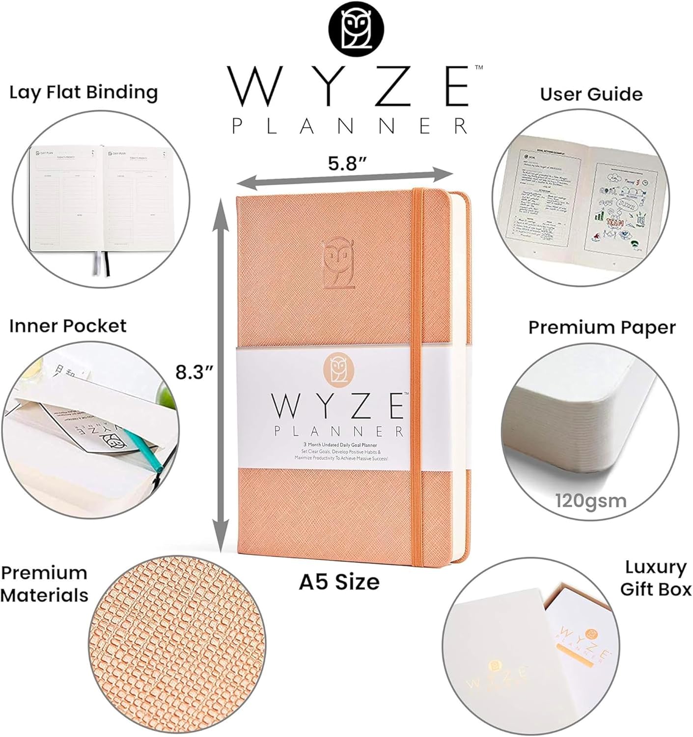 Undated Daily Planner – 3-Month A5 Productivity Organizer with Full Page Per Day, Hourly Schedule, Goal Setting, Habit Tracker, Weekly & Monthly Pages – Hardcover Time Management Notebook (Rose Gold)