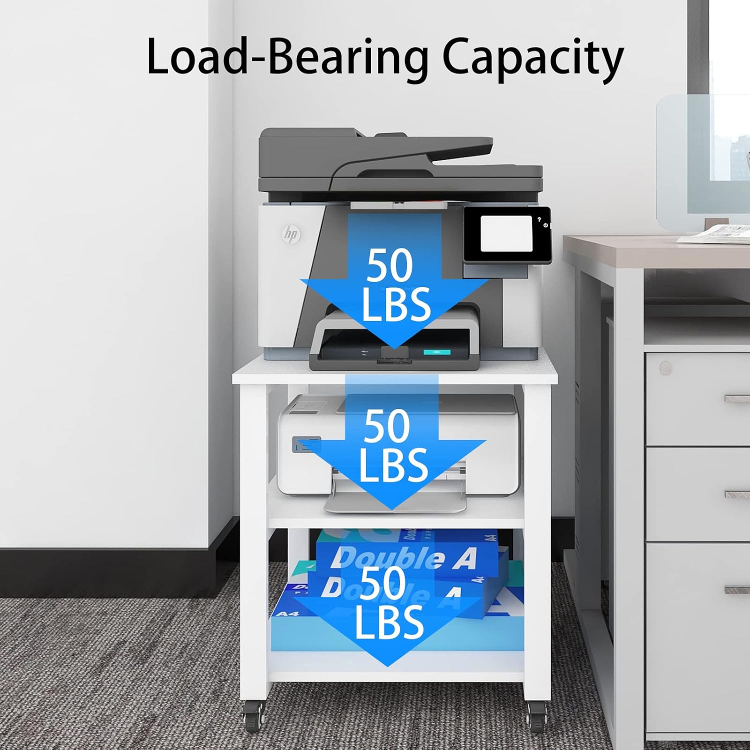 - 【Multi-functional Shelf】The top size is 19.7*19.7inch, It is mainly used as office racks to hold office supplies such as large printers and fax machines, and can also be used in the bedroom, kitchen, and living room to place household items.