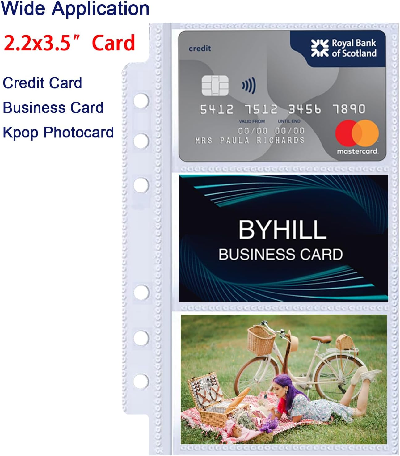 - Size and Application- These 6 ring personal refill pages are 4.4x7.1” and the slot size is 3.6x2.3”. They are perfect for organizing standard business cards, credit cards and instax mini photos, K-pop photocard. And they can fit any standard A6 ring binder