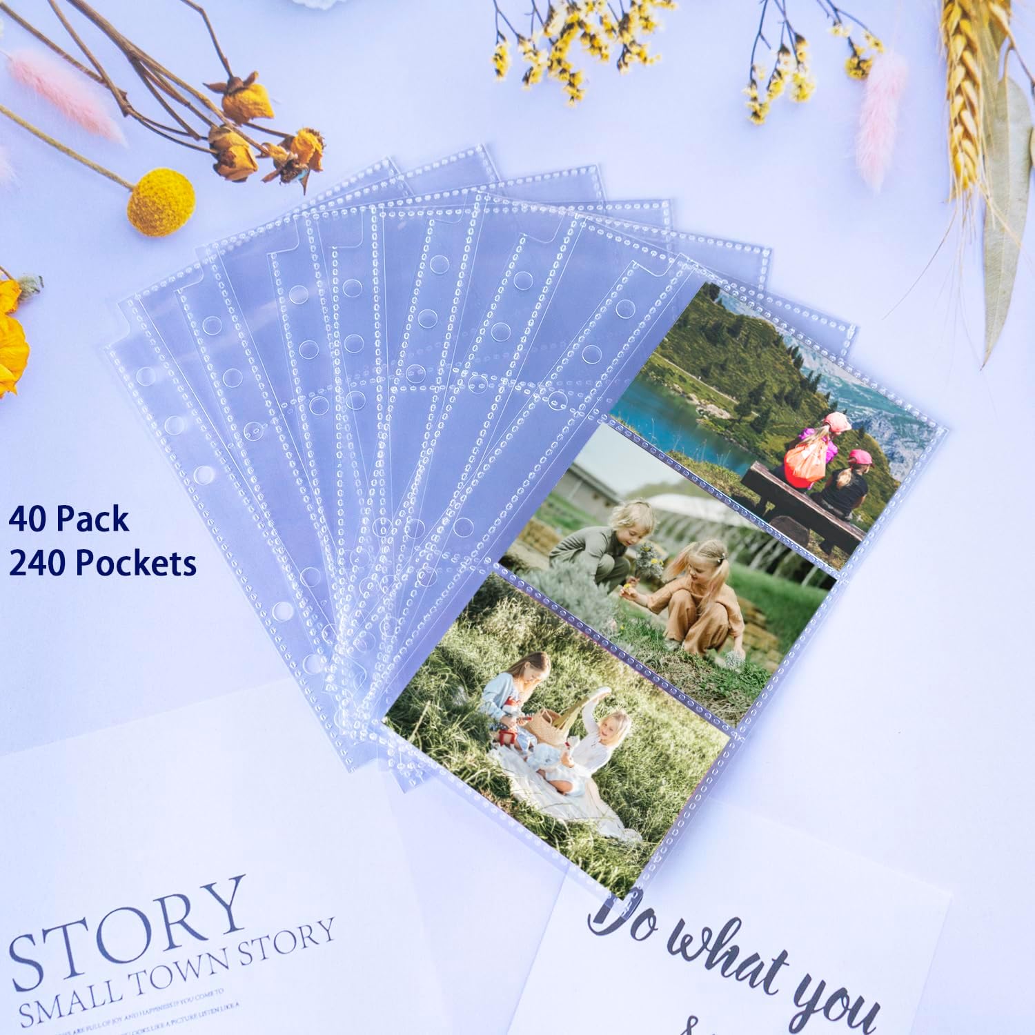 40 Pack 240 Pockets A6 Binder Business Card Sleeves, Ultra-Clear K-pop Photocard Sleeves, Double Sided 3 Pocket 6 Ring Planner Refill Pages for Business Card, Credit Card and K-pop Photocard