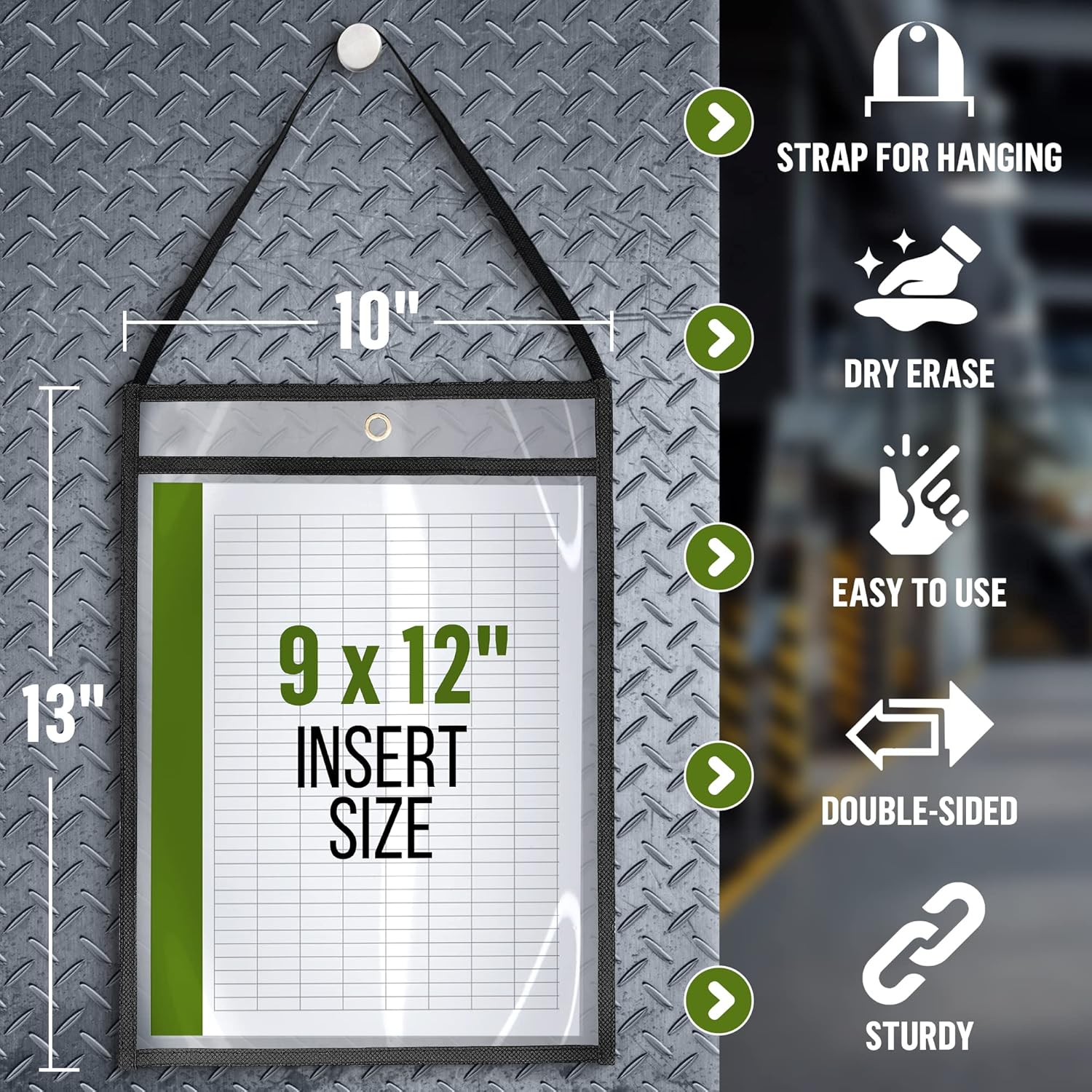- ☑️ PROTECT & ORGANIZE DOCS - 9x12 plastic sleeves are water & dust resistant, it's perfect for displaying production schedules, inventory cards, work orders in industrial environmental DRY-ERASE surface is great for equipment inspections/check lists