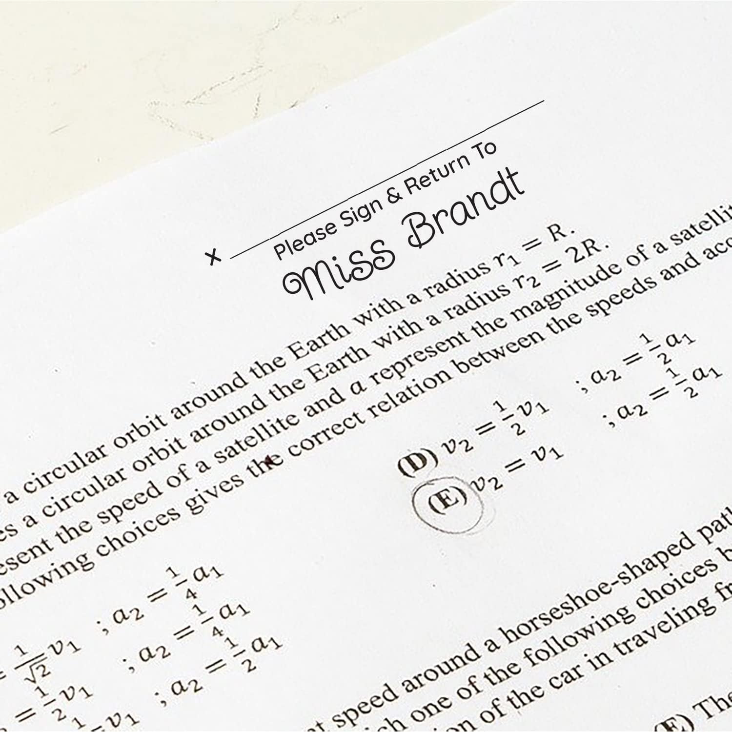 Personalized Sign and Return Teacher Stamp / 2000 Plus Self Inking Homework Signature Stamper/Custom Script Black Imprint/Made in USA