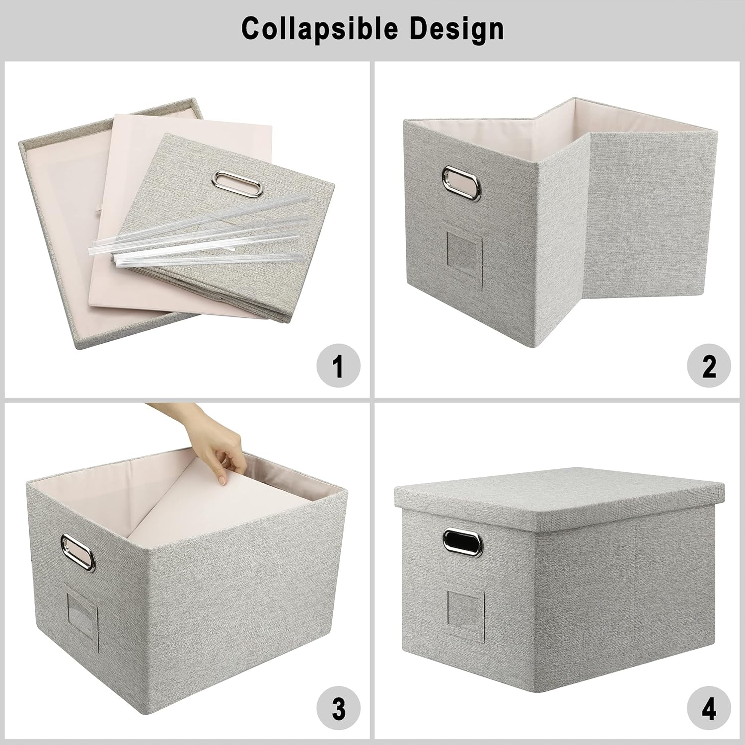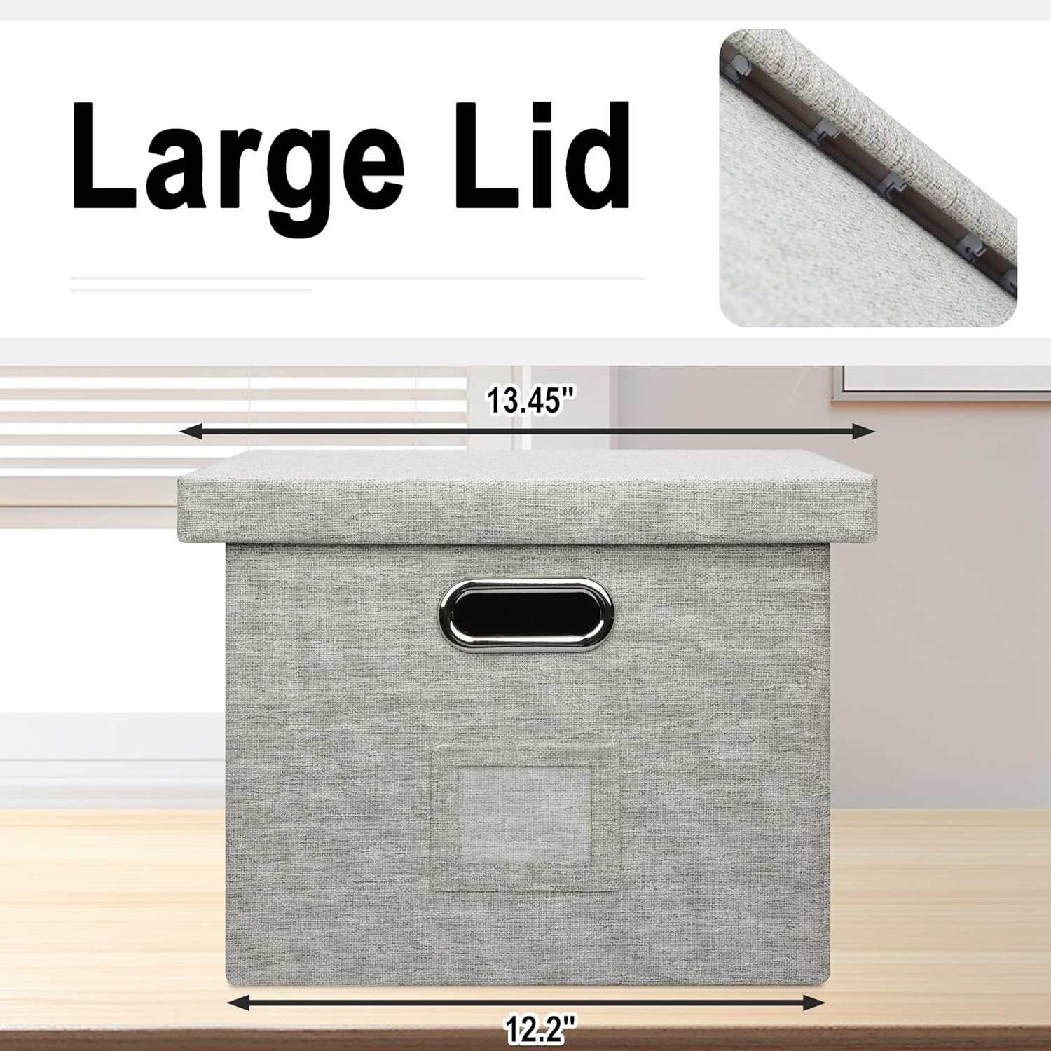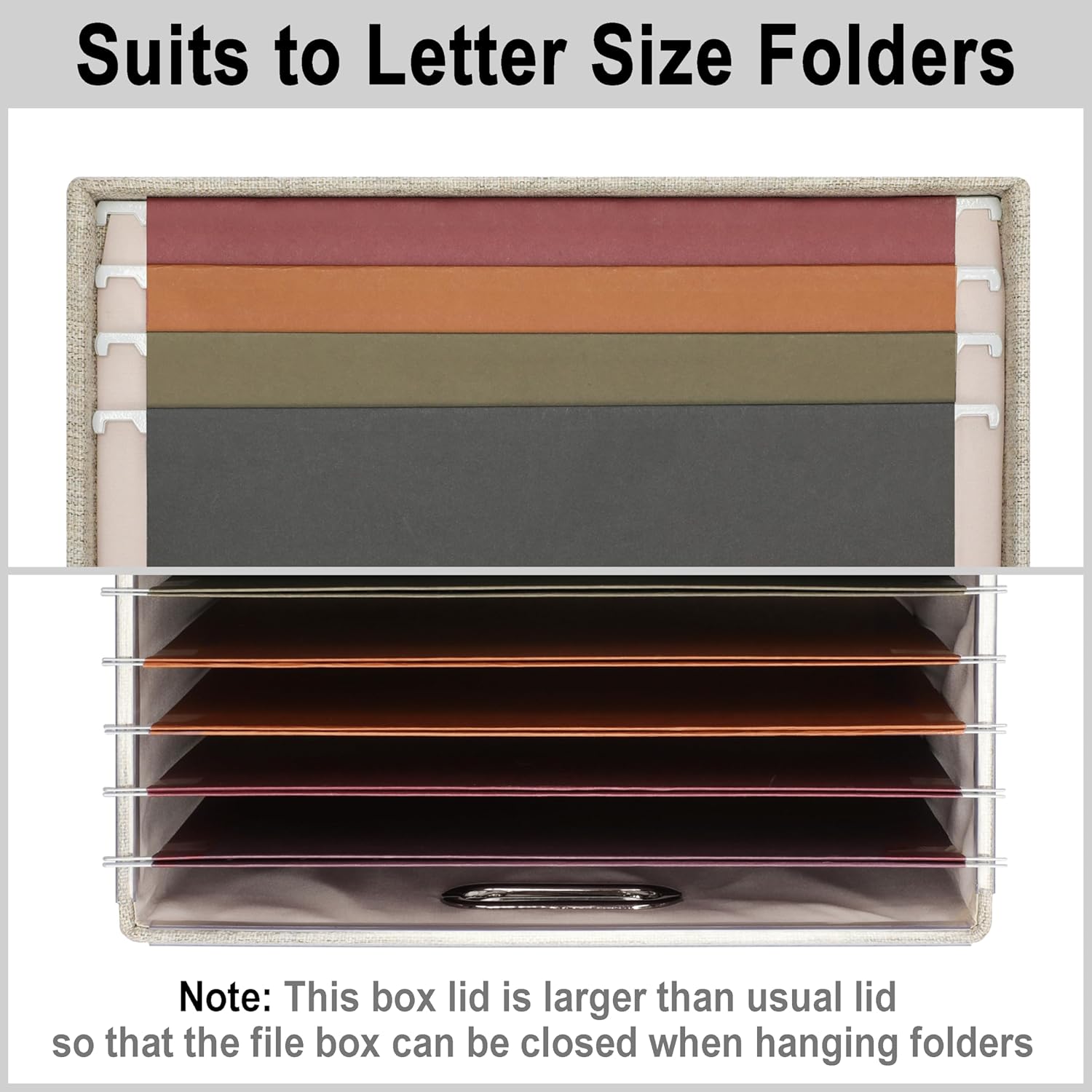 File Organizer Box, Collapsible Storage Filling Collectior with Lid for Letter Legal Size Hanging Folders Decorative Linen File Folder Box Document Storage Filing Bin, Beige 2 Pack