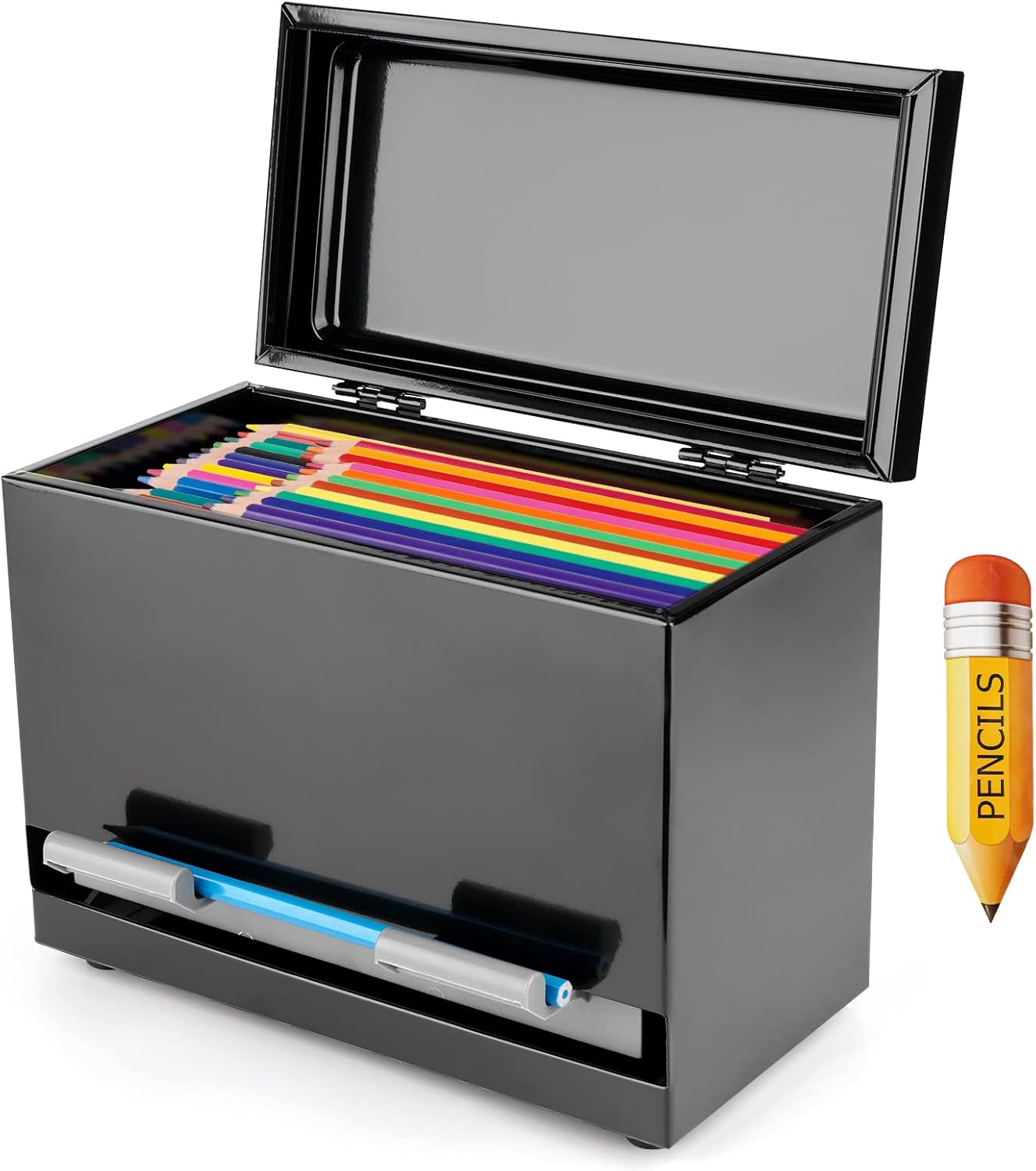 Stainless Steel Pencil Dispenser/Pen Holder for Classroom Home Restaurant for Bulk Pencils Storage/Unwrapped Drinking Straws Storage (Black)