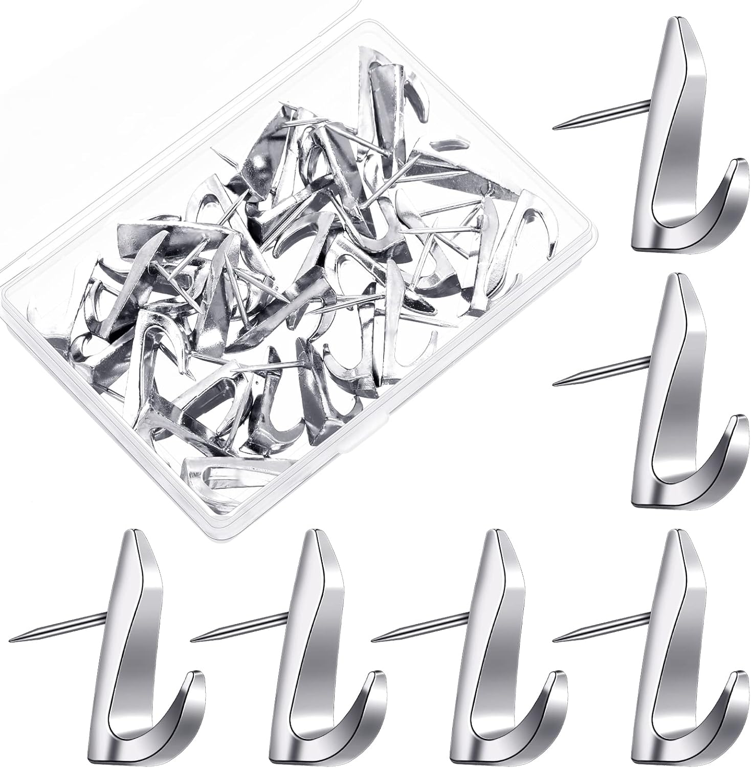 Ferraycle 30 Pieces Metal Push Pin Hangers 20 lbs Picture Hooks Zinc Alloy Thumb Tacks Hanging Hooks with Nails for Home Office Fabric Wall Wooden Board (Silver)