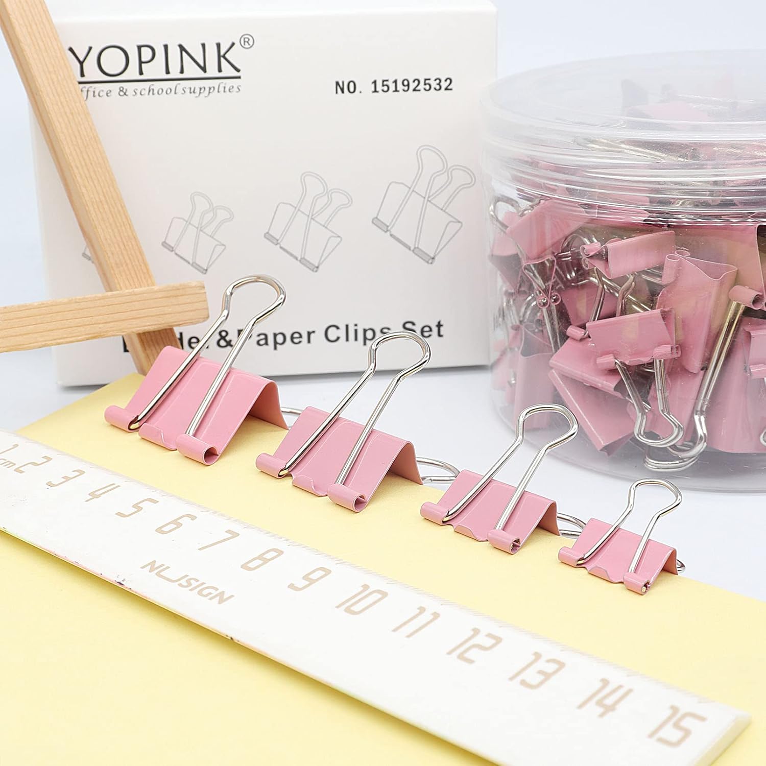 Binder Clip Paper Clamps, Assorted Sizes (Mini, Small, Medium, Large), 100 Pcs Clips for Office School Supplies (Pink)