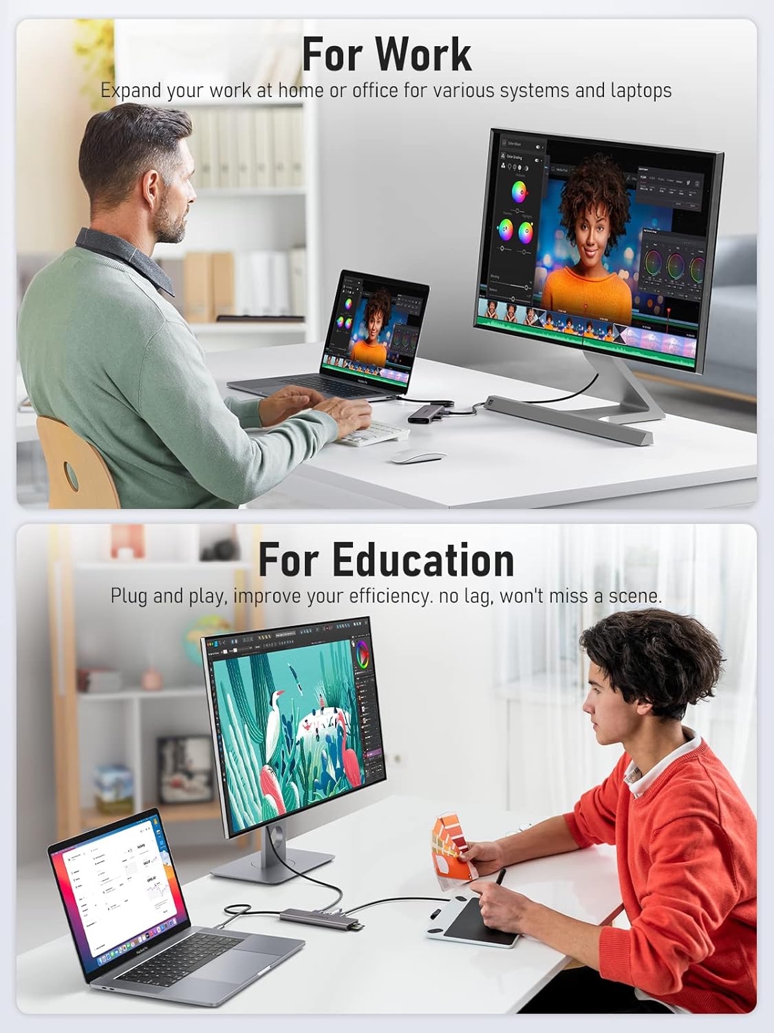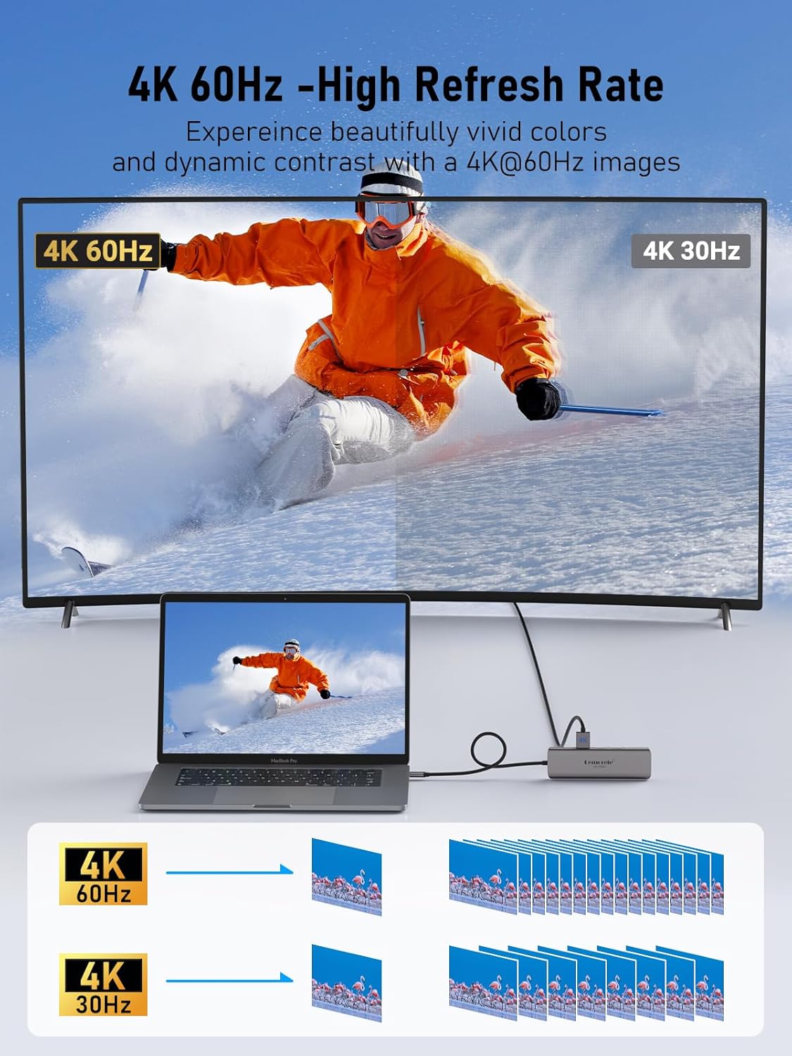 - 【4K@60Hz High Refresh Visual Enjoyment】: Lemorele USB C HDMI Hub support 4K@60Hz high refresh, you can easily connect the USB C enabled device to any HDMI television or monitor and experience exceptional picture sharpness and sound reproduction with 4K at 60Hz. Ideal for business conferences, presentations, games. NOTE: Be aware of DP 1.4 version of your device to get 4K 60Hz.
