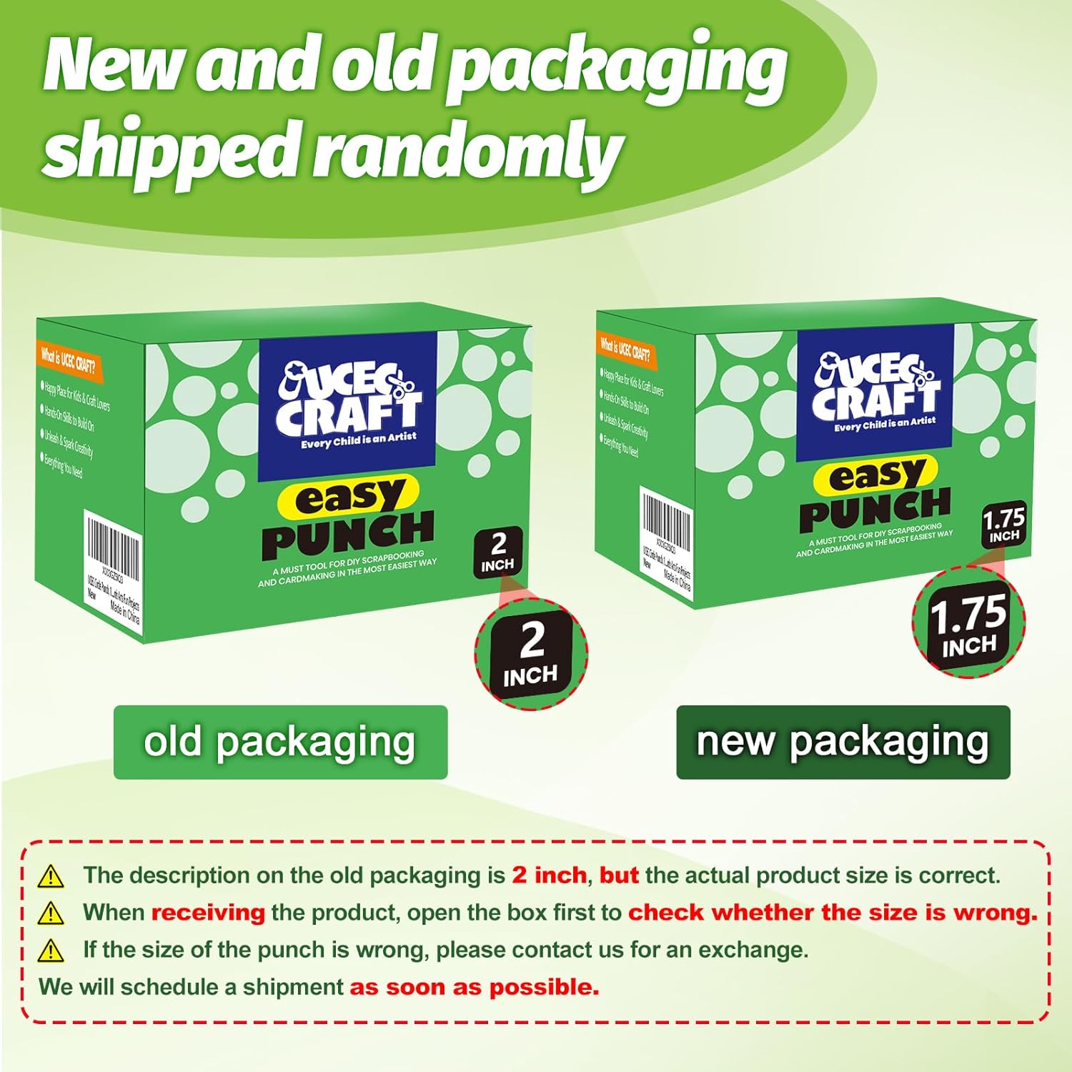 - PAY ATTENTION : If you receive the product box says 2 inch, please don't worry, it's just the wrong size written in the package, actually the product in the box is exactly 1.75 inch punch, you can start by measuring the size of the pressed circle, if you are not sure, please tell us first