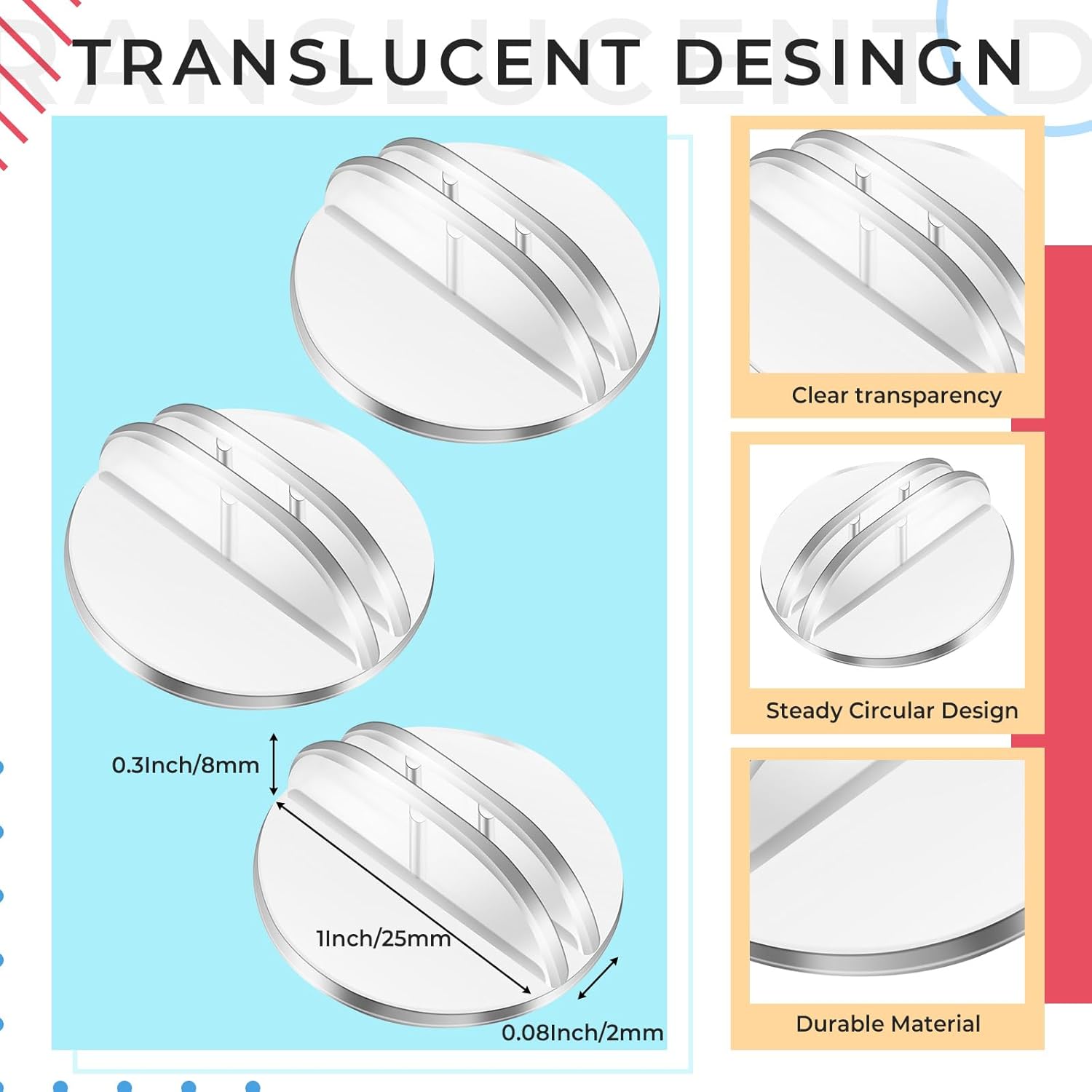 - Round Base: our translucent paper miniature bases are designed in round base, can be placed smoothly on the table, not easy to slip, to hold your card firmly; The circular base is 1 inch, the slot width is 0.08 inches, and the slot depth is 0.3 inches. The maximum thickness of the cards that can be held is 0.08 inches. If there are too few cards or they are too thin, the cards will not be held firmly.