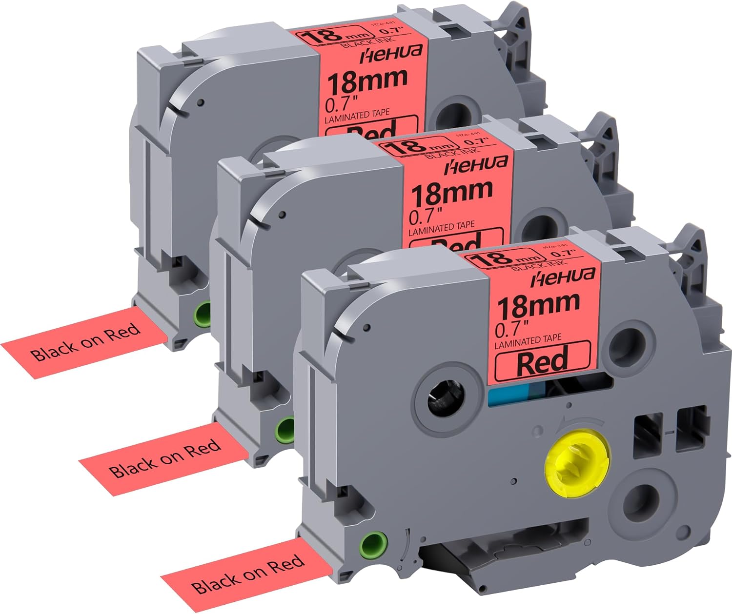 Hehua Tape Tze Tz 18mm 0.7 Laminated Red Compatible for Brother P-Touch TZe-441 TZe441 TZ-441 TZ441 Tape for Ptouch PT D400 D600 D610 P710bt, 3/4'' x 26.2ft Black on Red, 3 Pack