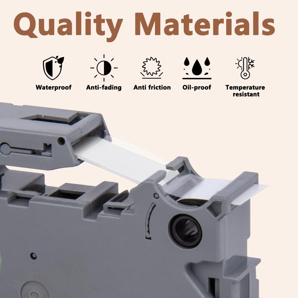 - Product features - The replacement compatible for Brother p-touch label tape 18mm tze-145 is split back, water resistant, fading resistant, abrasion resistant, temperature resistant, strong adhesive. The ptouch label tape 18mm tze-145 white on clear tape is suitable for indoor and outdoor use