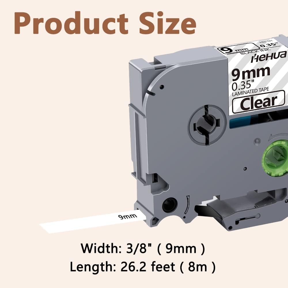 Hehua Tze Tz Tape 9mm 0.35 Laminated Clear Tape Compatible for Brother Label Maker Tape TZe-121 TZe121 TZ-121 TZ121 for Ptouch PT D210 D200 D220 D610 H110 1880, 3/8'' x 26.2ft Black on Clear, 3 Pack