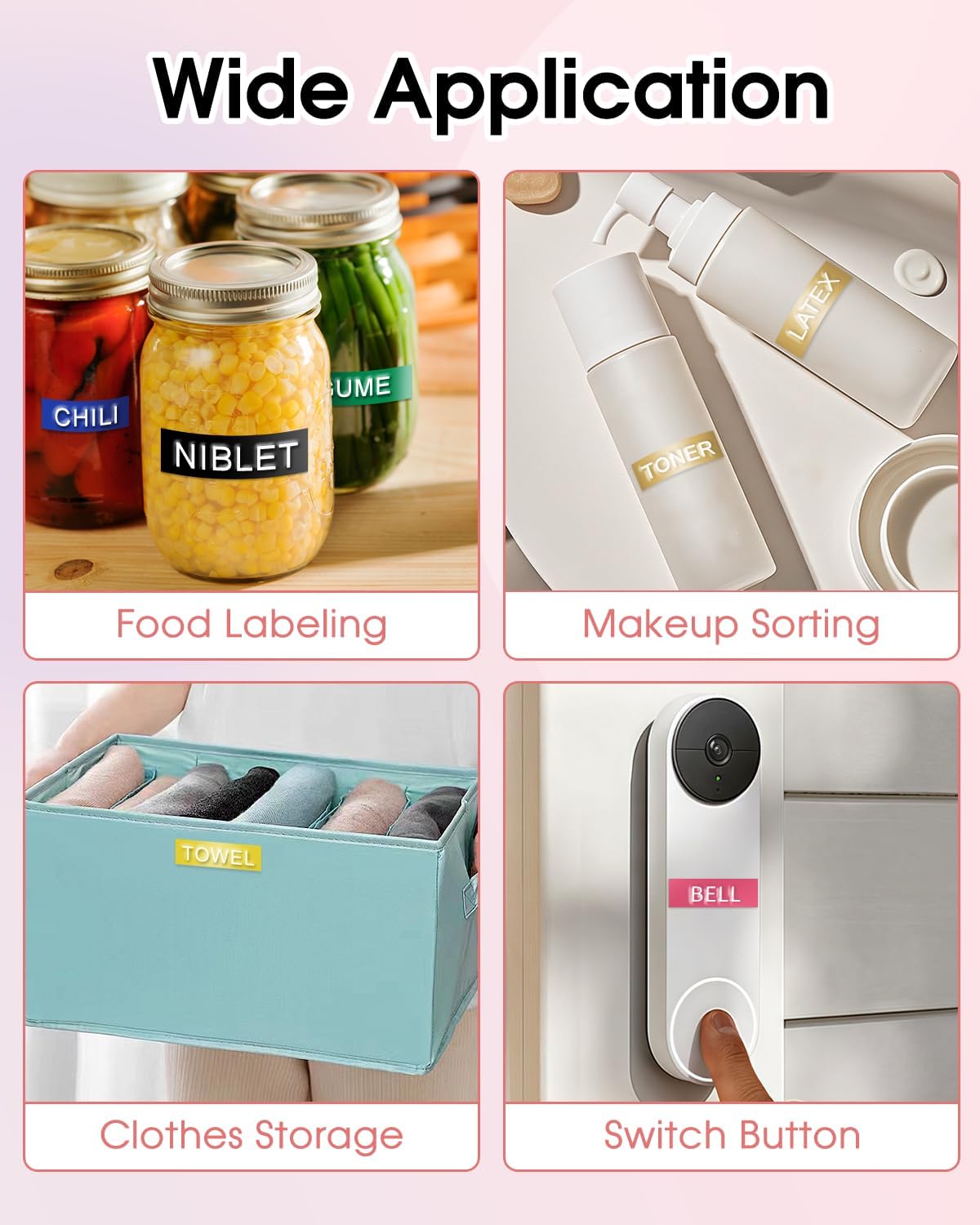 - 6 color 3D embossing label maker tapes : Black/Blue/Green/Pink/Light Yellow/Champagne Gold.