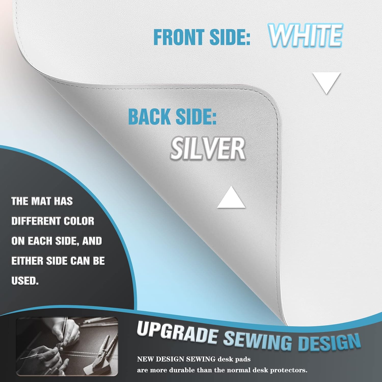 K KNODEL Desk Mat, Blotter, Dual-Sided Office Desk Pad, Waterproof Desk Mat for Desktop, Desk Blotters, PVC Leather Pad Protector (White, 31.5" x 15.7")