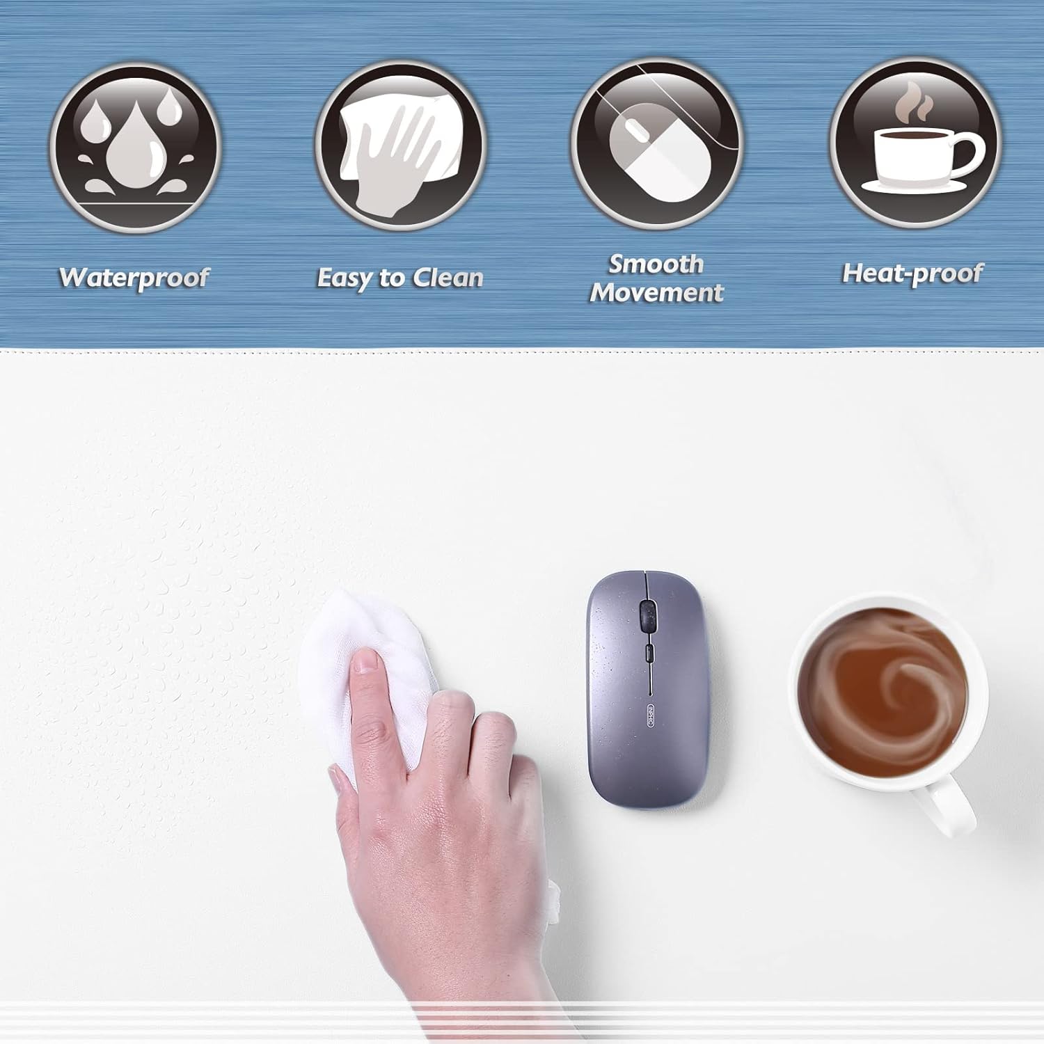 K KNODEL Desk Mat, Blotter, Dual-Sided Office Desk Pad, Waterproof Desk Mat for Desktop, Desk Blotters, PVC Leather Pad Protector (White, 35.4" x 17")