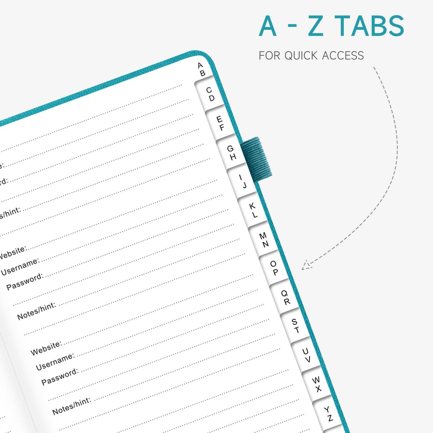Password Book with Alphabetical Tabs – Hardcover Internet Address & Password Organizer – Password Keeper Notebook for Computer & Website – 5.2 x 7.6" Log-in Password Journal w/Thick Paper (Turquoise)