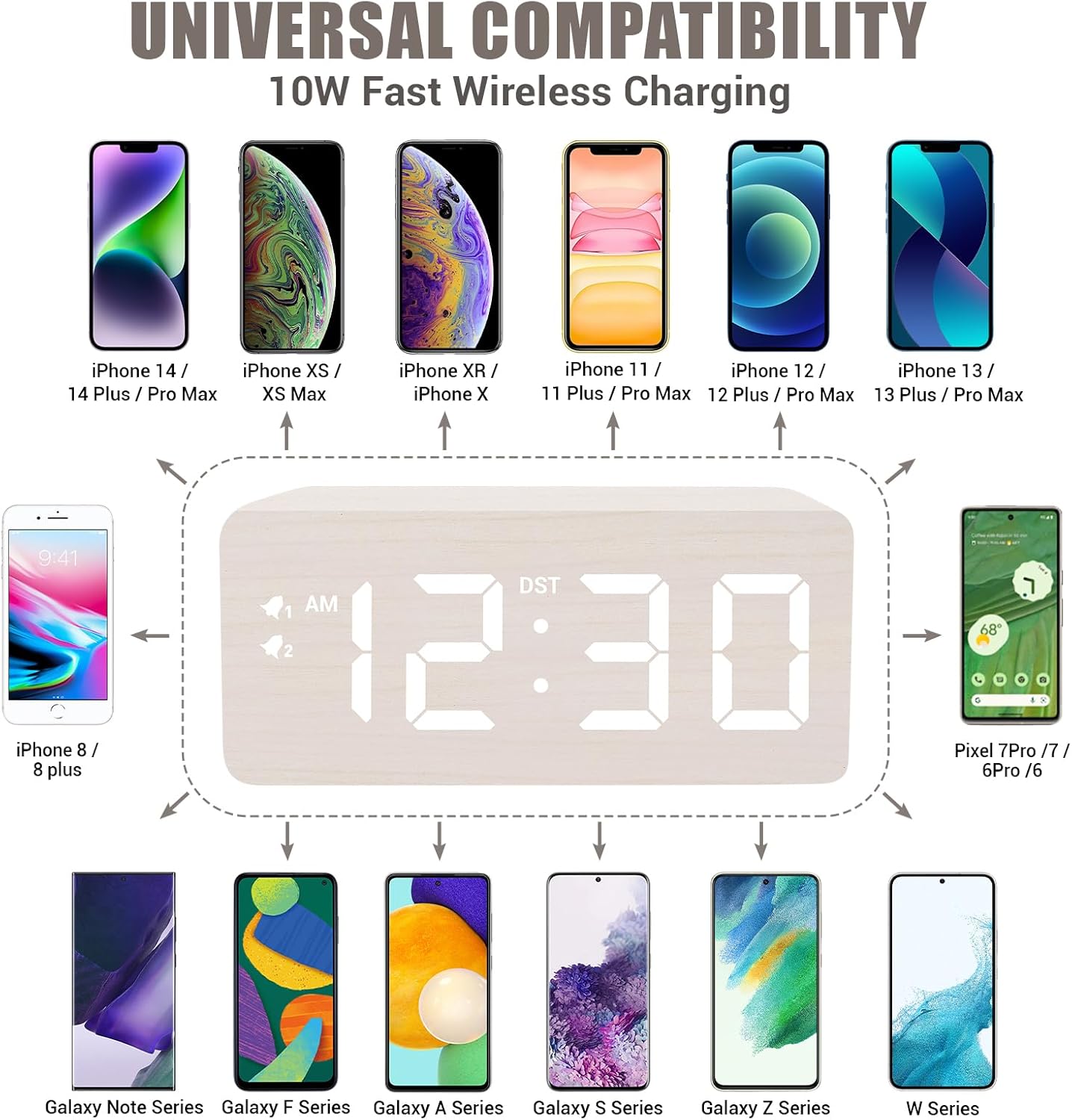 - ⏰【10 Faster Faster Wireless Charging】- Compared with alarm clocks on the market with only 5W wireless charging, this wooden alarm clock is upgraded to 10W weireless charging for faster charging, saving time on charging your phone.It also features a USB port to charge other electronic device.