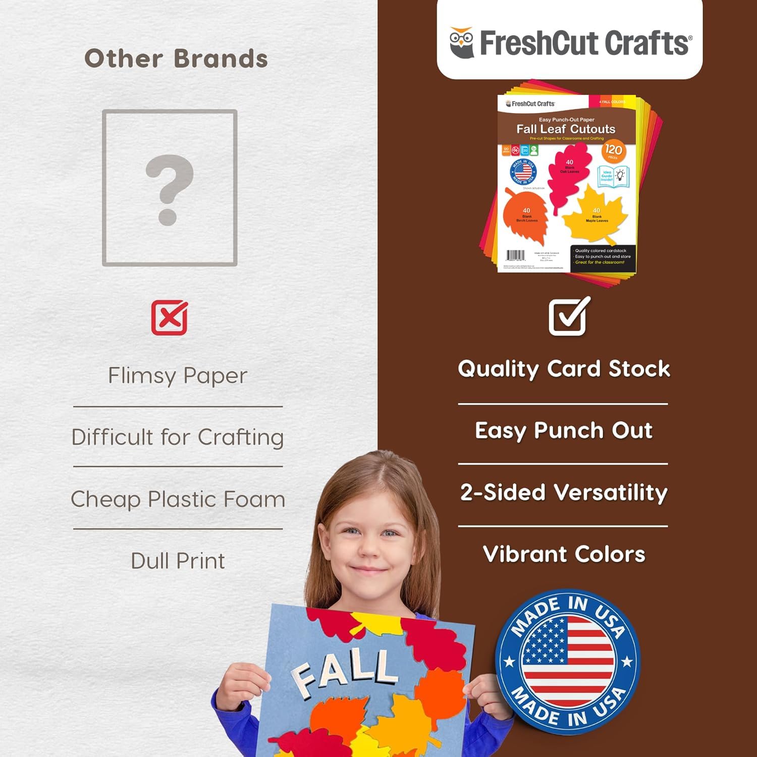 - EXPERIENCE SUPERIOR CRAFTING: Enjoy Maple leaves, Birch leaves and Oak leaves on 20 sheets of sturdy, high-quality cardstock, proudly made in the USA! Each sheet is designed to effortlessly hold easy punch-out leaf cutouts in four Fall colors—red, 2 shades of gold, and orange—ensuring you have the perfect shade for every project. Each leaf is meticulously crafted from premium cardstock, offering a durable and realistic feel that adds a touch of elegance to your creations.