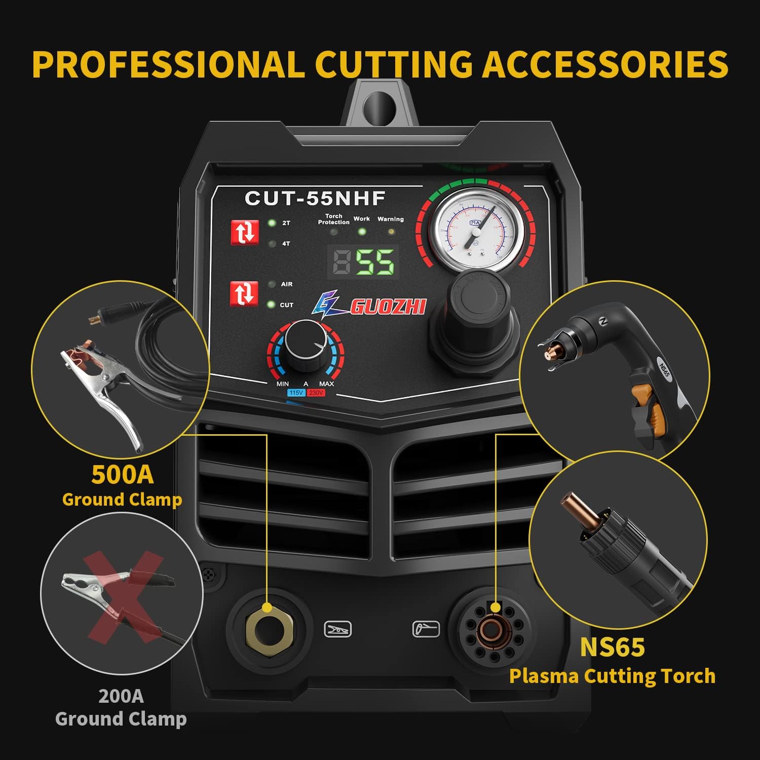 - 【Safety Guarantee】: GUOZHI 55 NHF Cutting machine with automatic drainage function, protect the electrode and nozzle. 2T/4T/TEST function, easy to operation. This Cutter with over-heating and over-current protection functions, with excellent and reliable quality, use more safety.