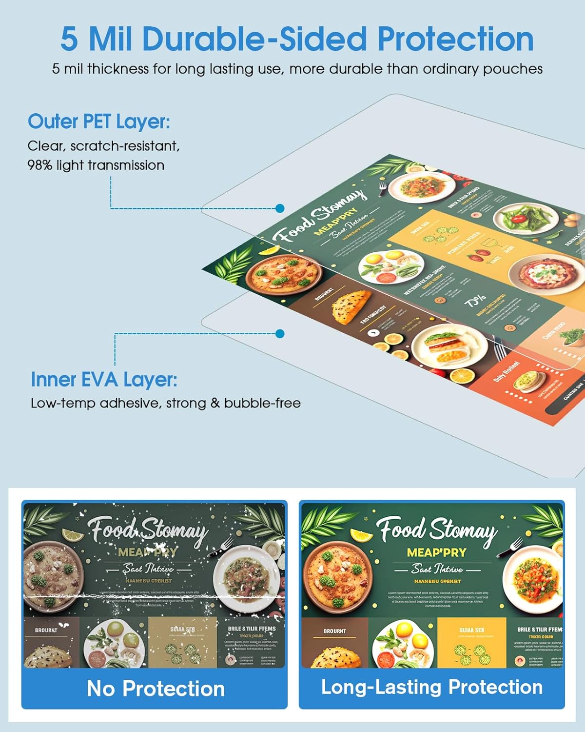 - Premium Material: Made from commercial-grade polypropylene, these laminating sheets create a water-resistant barrier for documents and photos. The tear-resistant edges withstand frequent handling, ideal for preserving important materials