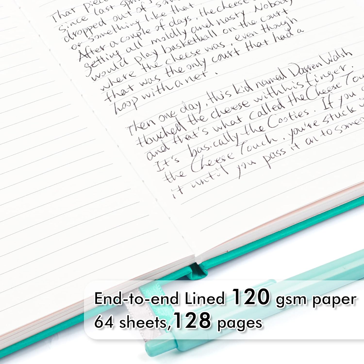 - These classic ruled notebooks are all blank inside with 128 lined pages (64 sheets), which would be convenient for daily usage. The hard cover journal has a water-resistant faux leather cover, round corners and bookmarks, which is designed to lay and open flat. There’s a “date/page” column on the top of every page. You can use it as a reminder to let you remember those important dates and find the page you want in a very short time.